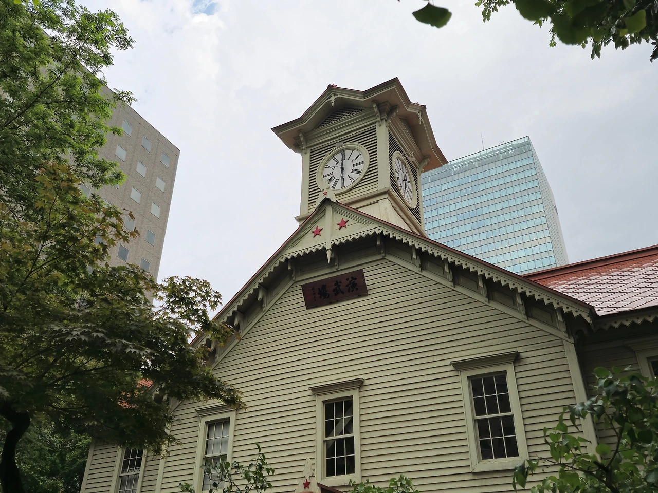 바로 옆에 삿포로 시계탑이 있는데 일정표에는 다음날 차창을 통해 보는 것으로 되어 있어 우리 가족은 자유시간에 잠시 다녀오기로 했다. 홋카이도대학의 전신인 삿포로농학교 시절 사용하던 건물로, 1878년에 건축되었다. "Boys, be ambitious! 소년이여, 야망을 가져라"로 유명한 윌리엄 스미스 클라크가 홋카이도 개척할 때 삿포로농학교의 전신을 만든 것으로 알려져 있다. 그래서 홋카이도 역사의 중요한 부분이라 일본의 중요문화재로 지정되으며, 현존하는 일본의 시계탑 중에서 가장 오래되었다. 그러나 주변 건물에 비해 크기가 작아서 초라해 보이는 느낌이지만, 잘 보존되고 있으며 결혼식장으로도 빌릴 수 있는다고 한다.
