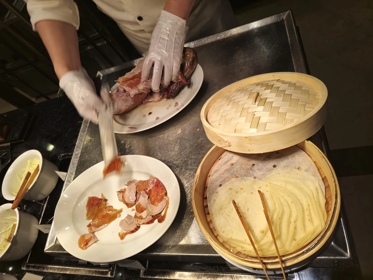 무엇을 먹을까 고민하며 한 두 개씩 집는 도중 내 눈에 들어왔던 것은 바로 북경오리이다. 다른 음식들이야 얼마든지 다른 식당에서 먹을 수 있지만, 베이징덕은 전문점에 가야지만 볼 수 있는 고급메뉴이기도 하고, 개인적으로 정말 좋아하는 음식이라 또다시 듬뿍 담았다.