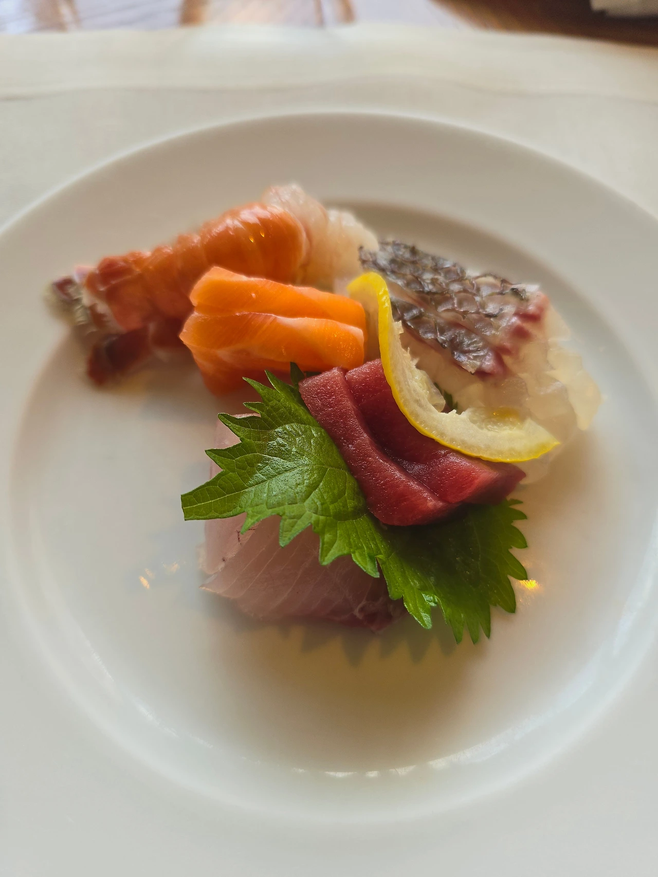음식은 전반적으로 너무 깔끔하고 서비스도 매우 훌룡했다. 들어가자마자 보였던 것은 모둠 회를 새우회와 함께 이쁘게 담긴 그릇이었다. 회를 정말 좋아하기에 바로 두 그릇 집어 자리에 가져다 놨다.