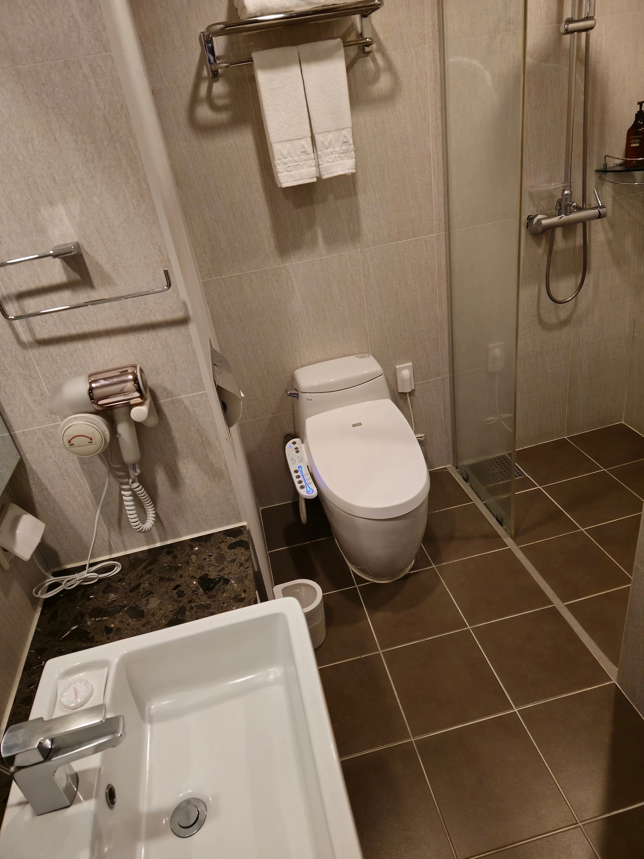 방도 생각보다 넓었고, 화장실도 샤워부스와 변기, 화장대가 나름 여유 있게 배치되어 있어 이용할 때 불편함은 없었다. 일요일 체크인, 월요일 체크아웃 일정에도 10만 원 아래의 가격으로 만족스러운 하룻밤을 보낼 수 있었다.