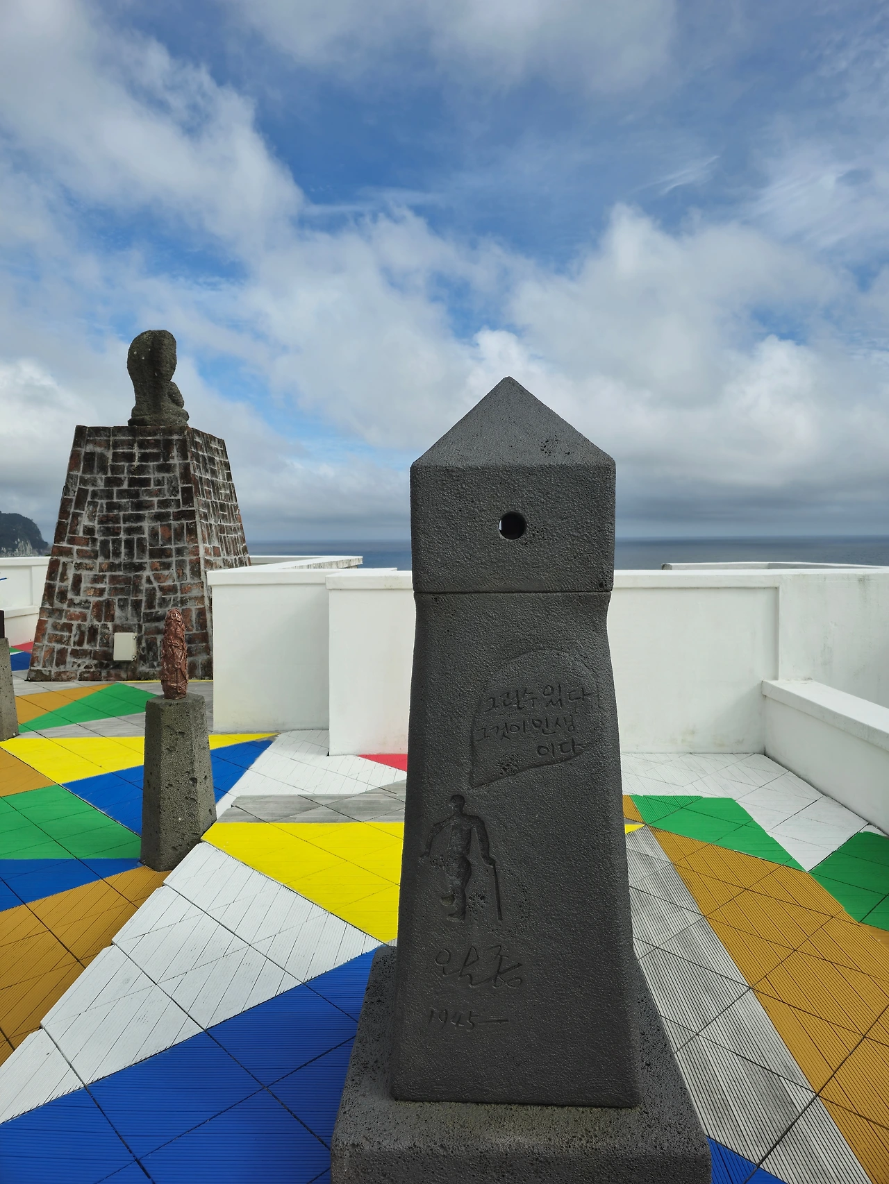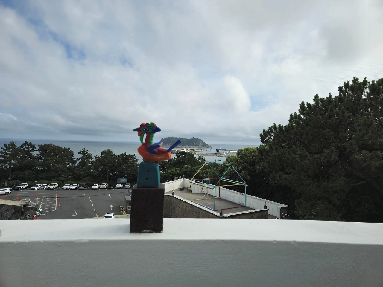 옥상으로도 올라갈 수 있었는데, 올라가 보니 여러 조각품들과 함께 제주도의 남쪽 푸른 바다와 섶섬, 문섬 , 새섬 및 한라산 정상 등을 파노라마로 느낄 수 있었다. 그곳에 가보니, 예술혼이 조금은 불타오르는 느낌이 들었다.
