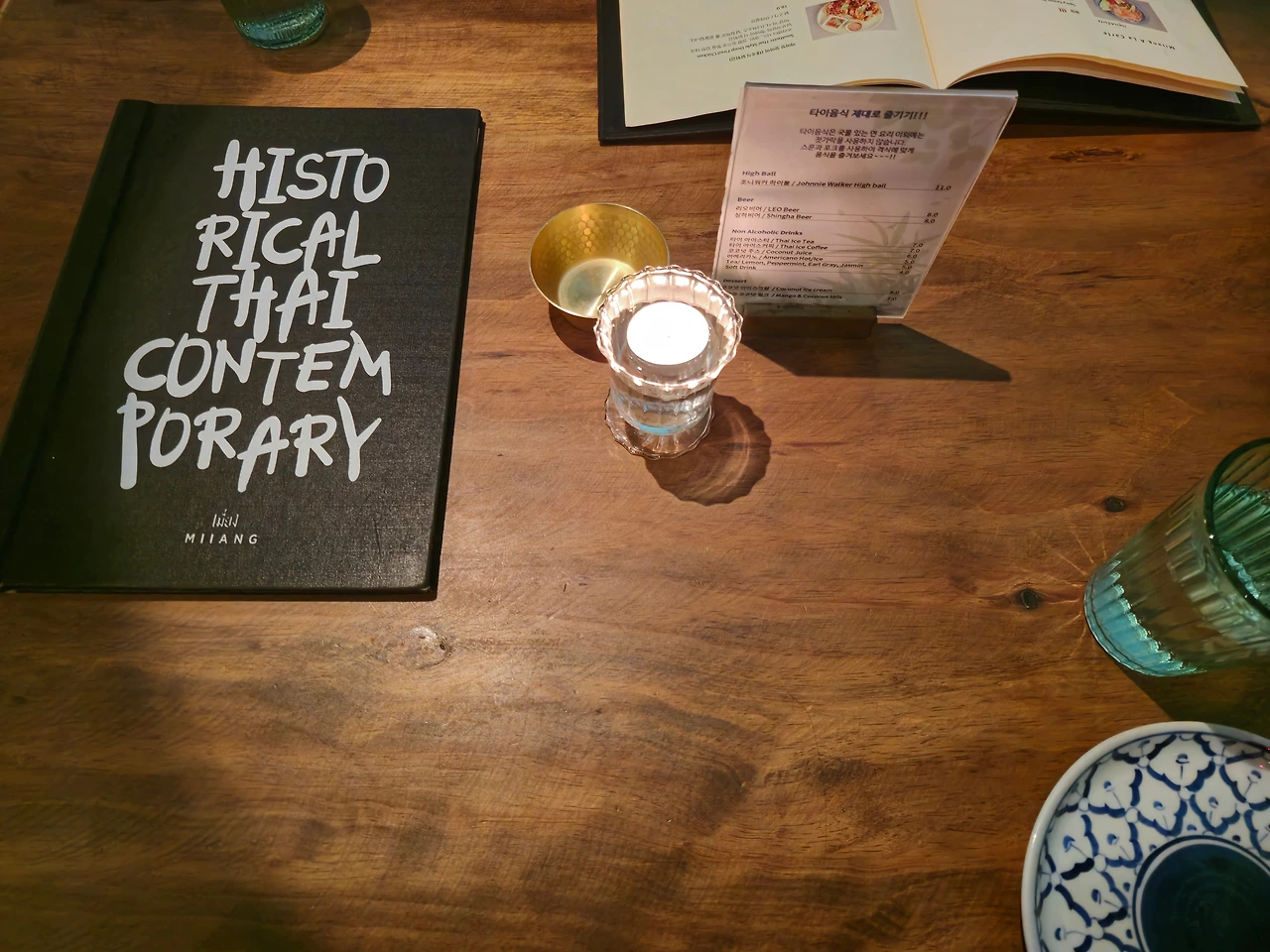 안다즈 호텔에는 맛집들이 있어 자주 가서 밥을 먹는다. 다른 식당을 가기 위해 태국 음식점 미앙 앞을 지나갔다. 사람도 많아 보여 다음에는 여기로 오자고 하며 원래 가기로 했던 식당에서 식사를 했다. 시간이 지나, 이 근처에서 밥 먹을 곳을 찾다가 저번에 봤던 이곳이 떠올라 찾아오게 되었다. 다행히 갔을 때는 웨이팅이 없어 바로 입장할 수 있었다.