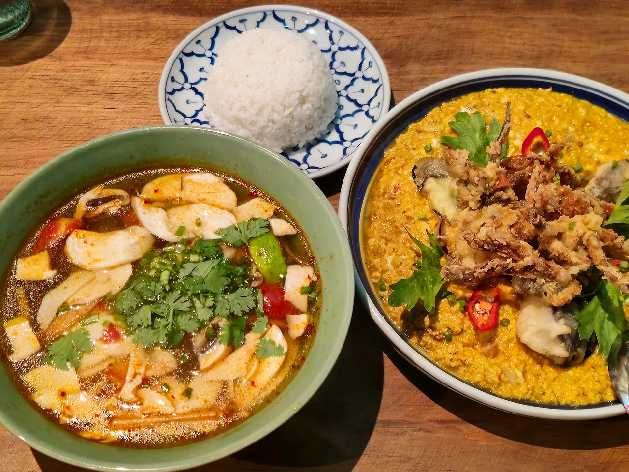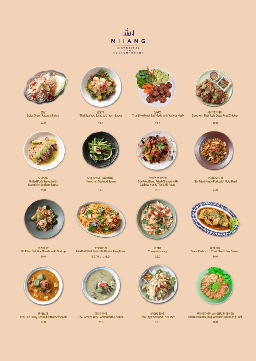메뉴는 다양한 음식이 있다. 단, 뿌팟퐁커리에는 밥이 포함되어 있지 않고, 똠얌꿍에는 면이 포함되어 있지 않아 추가적으로 주문을 해야 됐다.