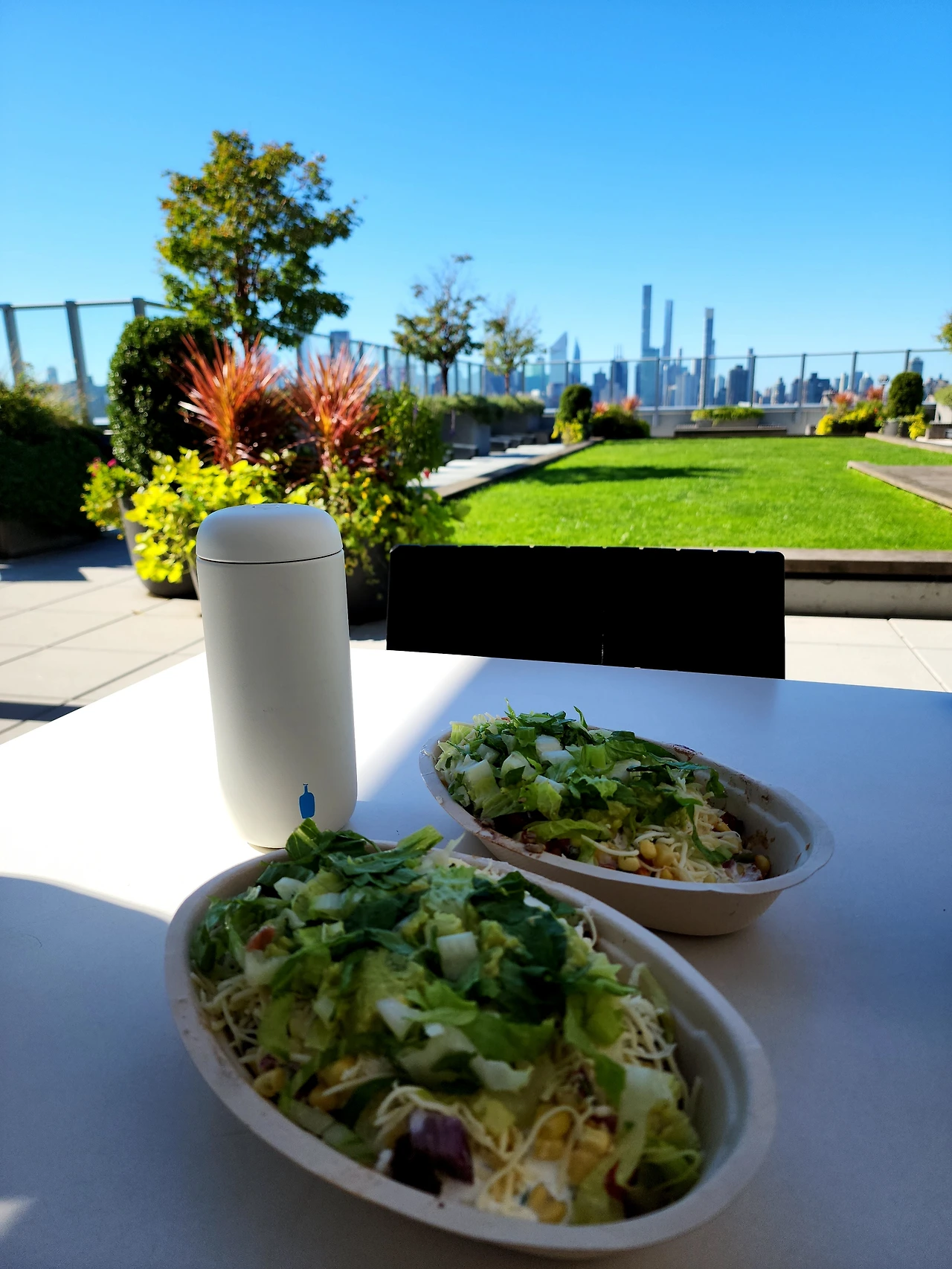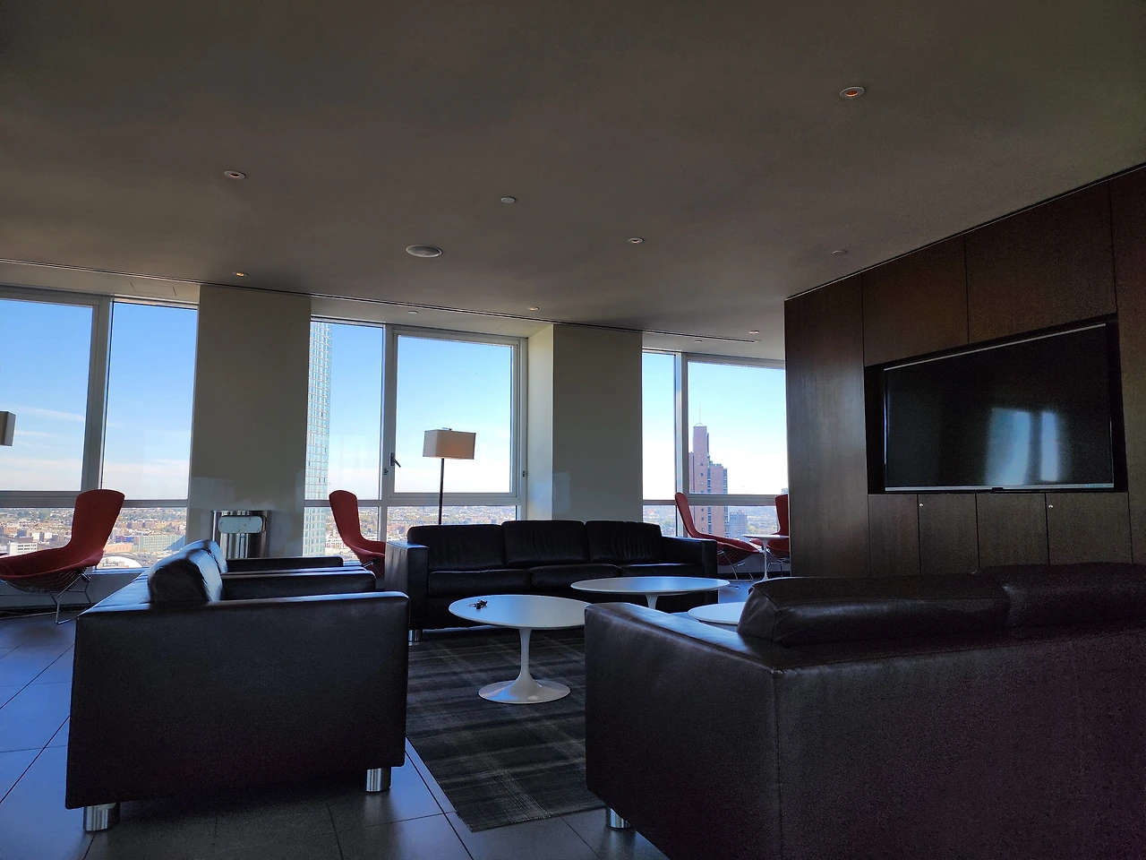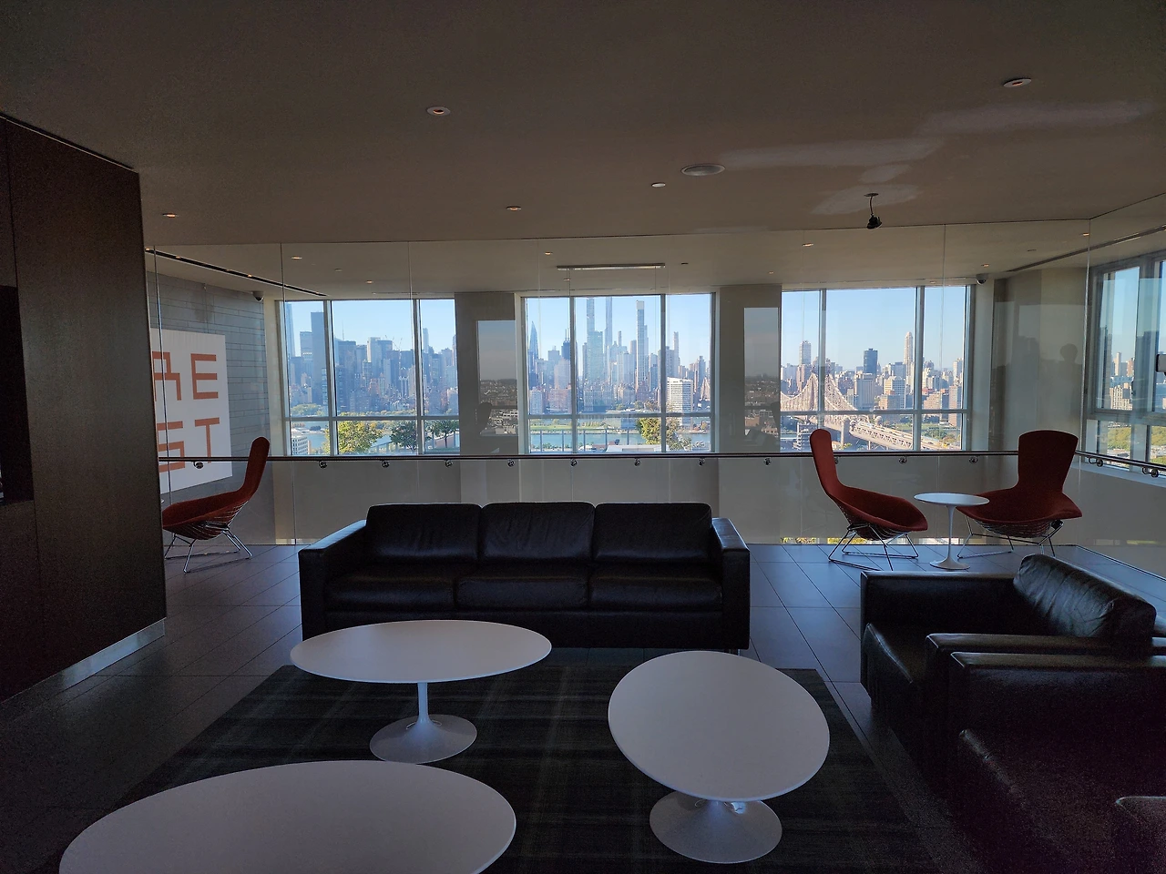뉴욕의 스카이라인이 보이는 테라스와 실내 공간이 잘 되어 있었다. 헬스장도 있었는데, 밖을 돌아다니느라 그곳까지는 가볼 수 없었다. 낮에 봐도 멋지지만, 밤에는 뉴욕의 야경을 어디 올라가지 않고, 살고 있는 그 건물에서 즐길 수 있다는 것과 뷰 그 자체로도 그 어느 곳에서의 뉴욕 뷰보다 더 만족스러웠던 숙소였다.
