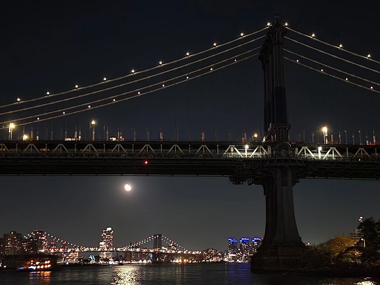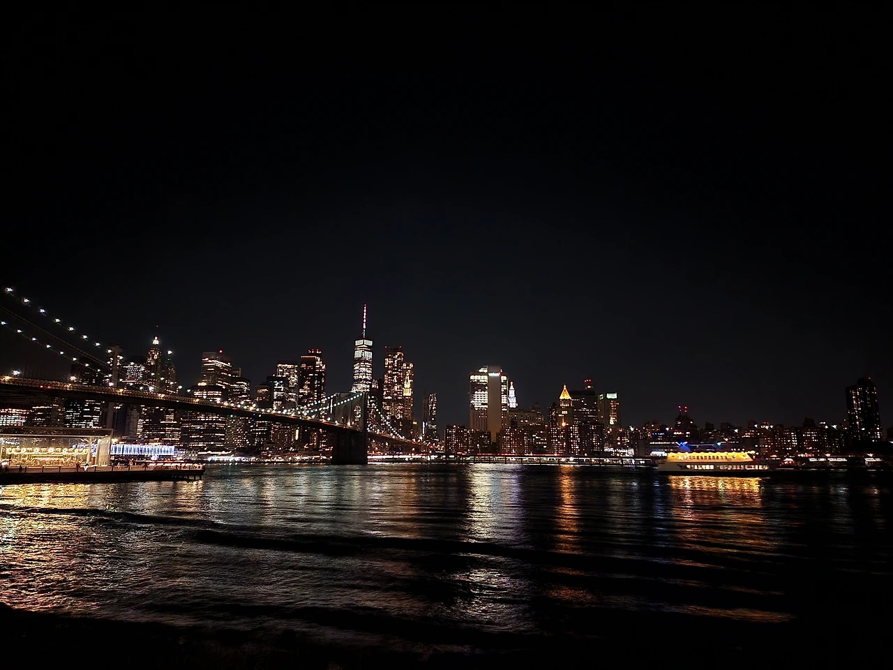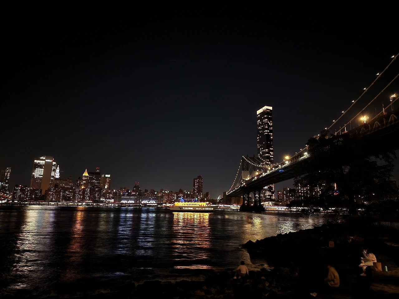 맨해튼 다리 쪽으로 걸어가면 뉴욕의 동쪽에 흐르는 East River로 가는 길이 있다. 그 길로 나가게 되면 돌로 된 강가로 나갈 수 있다. 좌측에는 브루클린 다리가, 우측에는 맨해튼 다리가 보이고 정면에는 뉴욕의 야경이 보인다. 동쪽에서 서쪽을 보기 때문에 뉴욕시내 뒤로 보이는 석양, 일몰 보러도 많이 가는 곳이다.