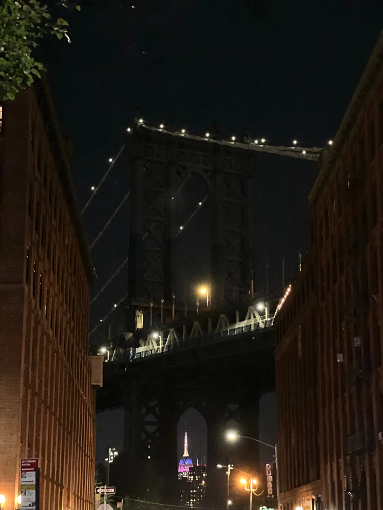 맨해튼 교가 미국식 주택가 사이로 보이는 사진 맛집이다. 구글 지도에서 찾으면 정확한 포토스폿을 볼 수 있다. 늦은 밤에 갔기에 사람은 별로 없고, 건물들의 불은 거의 꺼져있었다. 오직 가로등과 다리의 불빛만으로 브루클린의 낭만을 느낄 수 있었다.