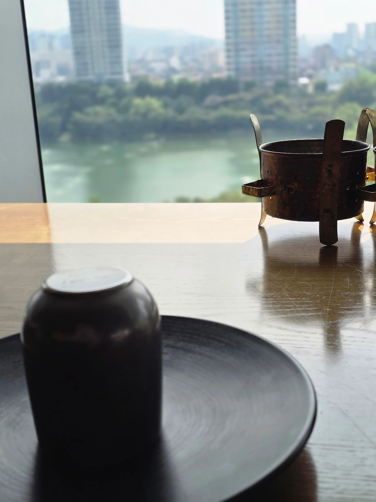 석촌 호수 바라보며 차는 배