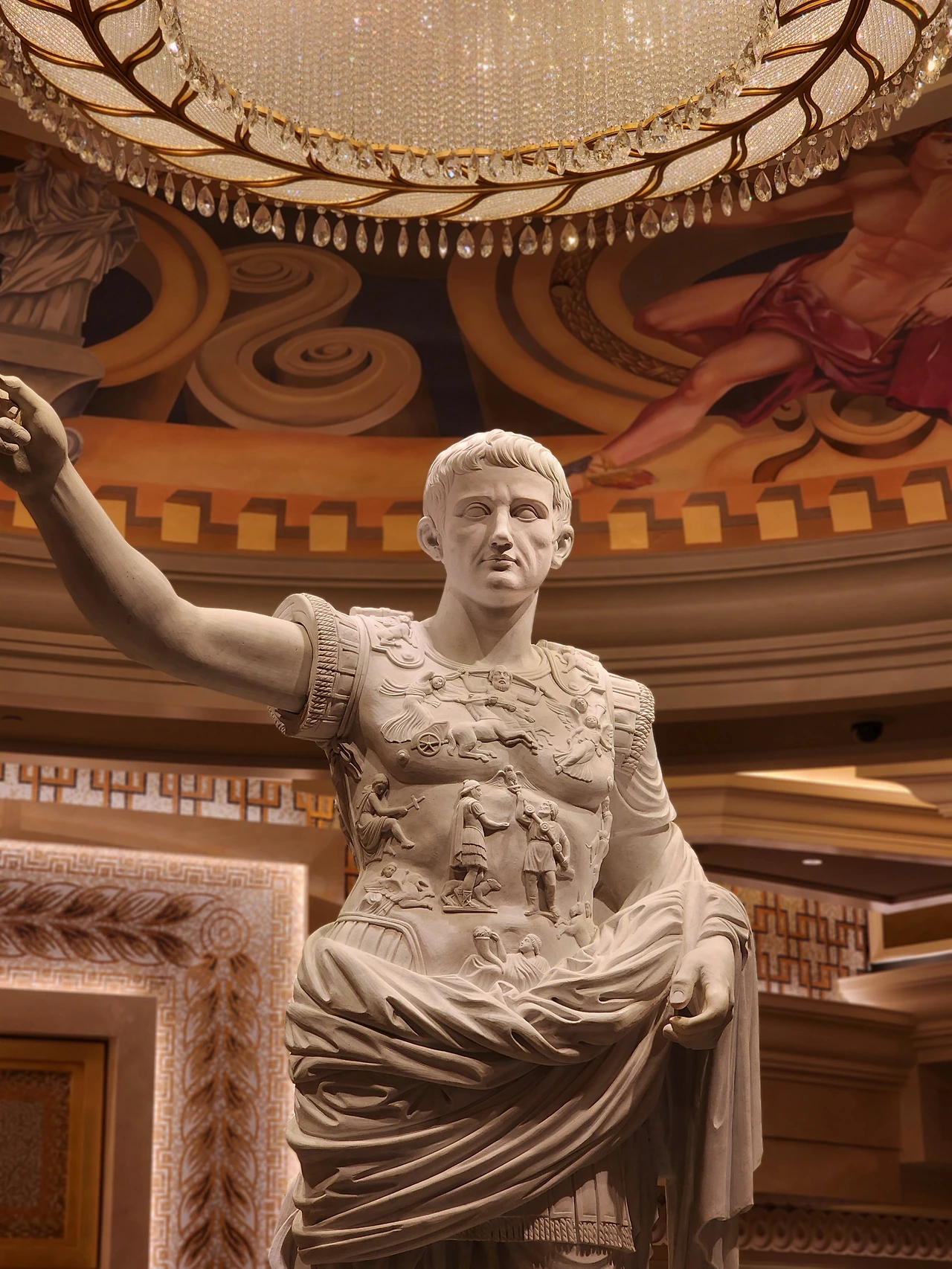 로마시대를 콘셉트로 한 호텔이다. 내부도 여러 동상들이 있다. 앞에는 그린 페리 가든으로 나무들을 예쁘게 꾸며놓았다.