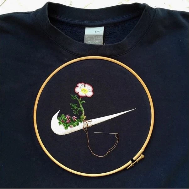 유명 스포츠 브랜드의 로고에 자수를 새겨 넣는 그의 작업은, 자연에서 모티브를 얻은 그의 자수는 빈티지 제품에 새로운 생명을 불어 넣습니다.