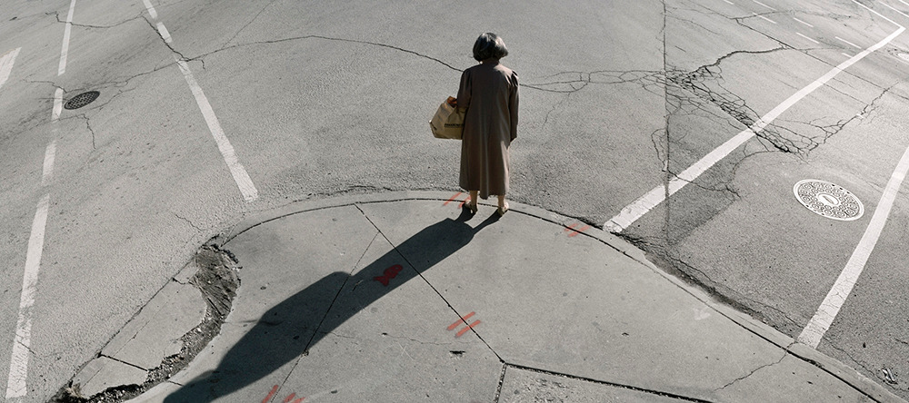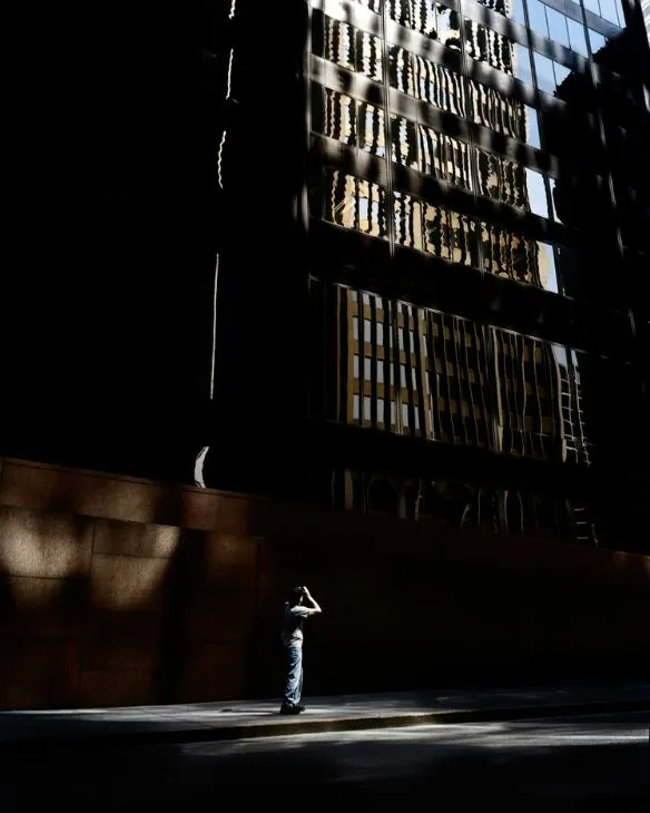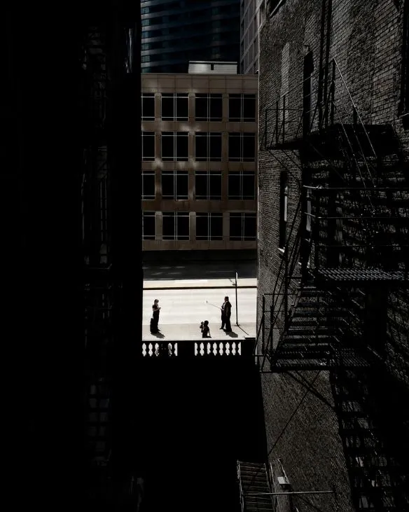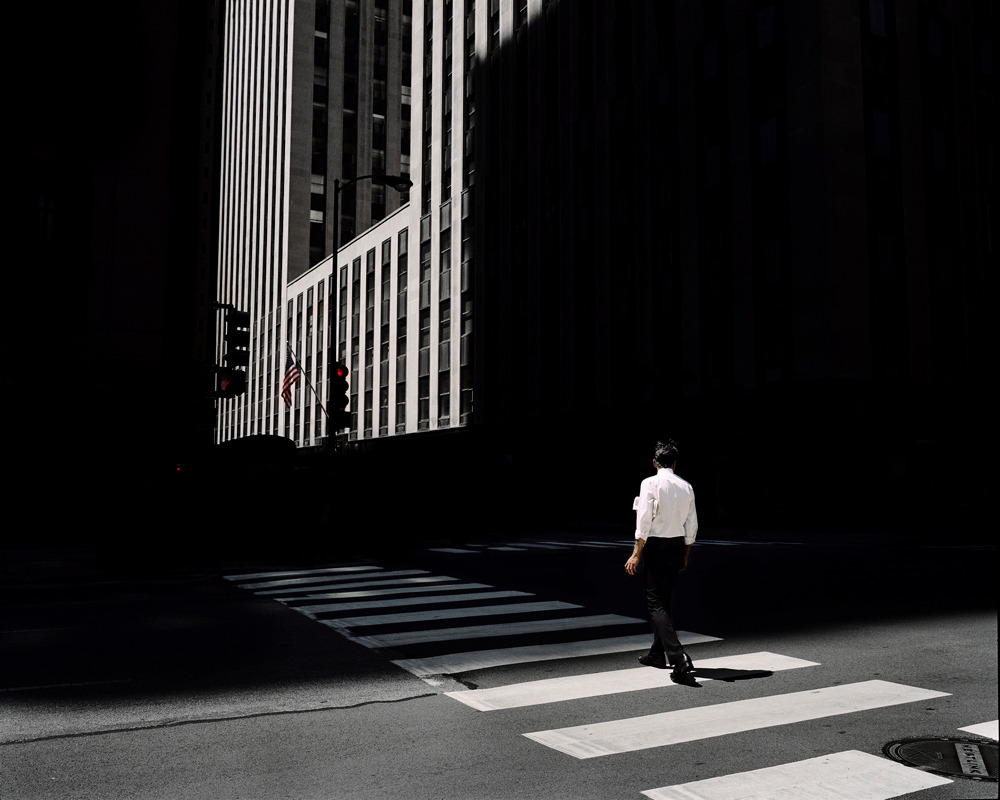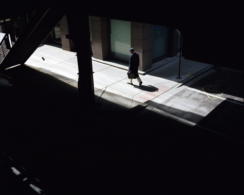 얼핏 보면 텅 빈 도시가 사진의 큰 주제처럼 느껴지기도 하지만 자세히 들여다 보면 사진의 여백을 메우는 사람의 존재를 느낄 수 있습니다. 사진 속 길게 늘어진 사람들의 그림자는 회색 아스팔트의 도시가 주는 건조함을 배가시키기도 하네요.
