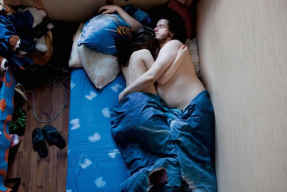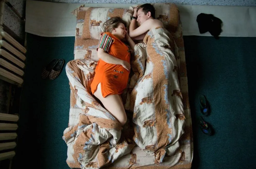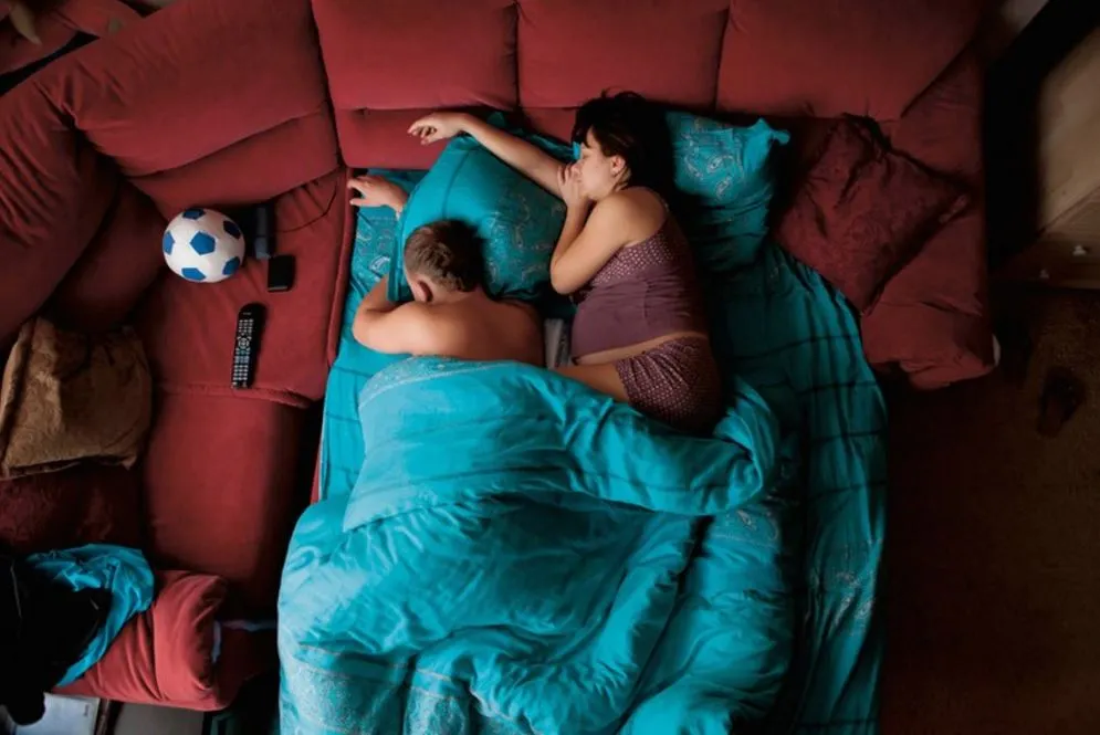 헝클어진 머리와 속옷 바람의 차림새의 커플들이 깊은 잠에 빠진 사진. 이 사진들의 공통점은 모두 만삭의 임산부와 그 배우자가 자고 있는 모습을 담고 있다는 점입니다.