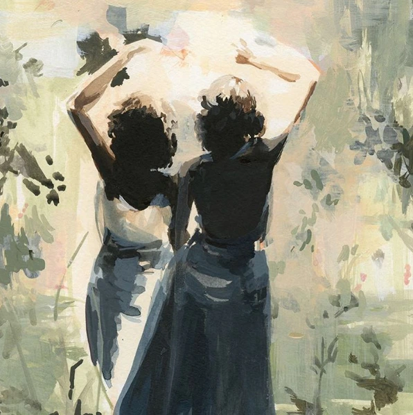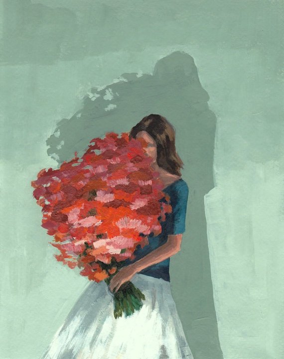 고개를 숙이거나 큰 꽃다발에 가려진 얼굴, 혹은 뒤돌아 있는 모습의 여성. 우리 일상의 고요함을 포착하여 수채화로 옮겨 놓은 듯한 그림은 오늘 일일영감에서 소개해드릴 화가 ‘Clare Elsaesser’의 작품입니다.