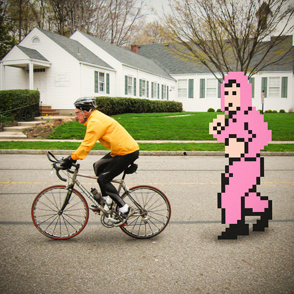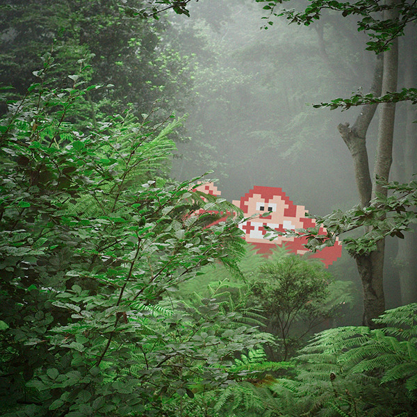어릴 적 추억의 게임 캐릭터들과 현실 속 풍경의 조합을 보여주는 위 작업물은 런던에서 활동 중인 아티스트 Aled lewis의 작품입니다.