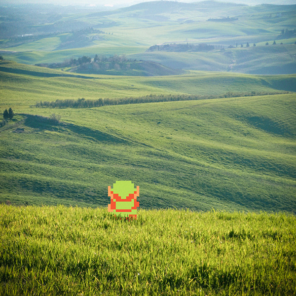 귀여운 캐릭터들 덕에 허전했던 풍경에 드라마틱함이 더해지는 그의 작품들을 보고 있으면 영화 <픽셀>이나 <주먹왕 랄프>가 떠오르기도 합니다. 각각의 사진마다 마치 거대한 이야기들이 담겨있을 것만 같은 상상을 하게 되네요.