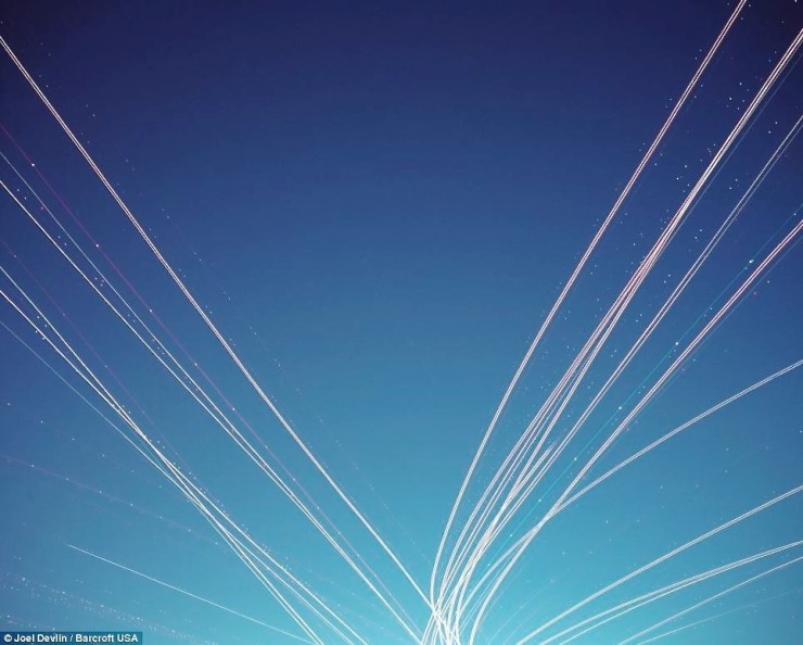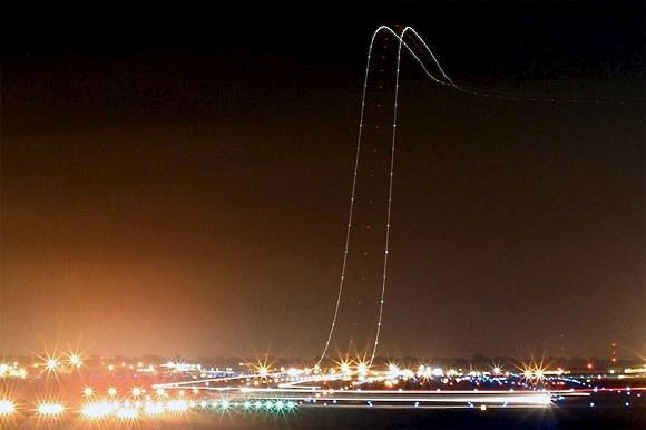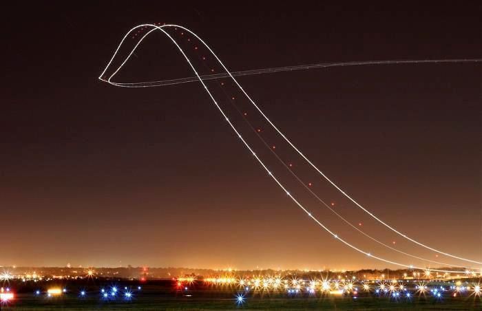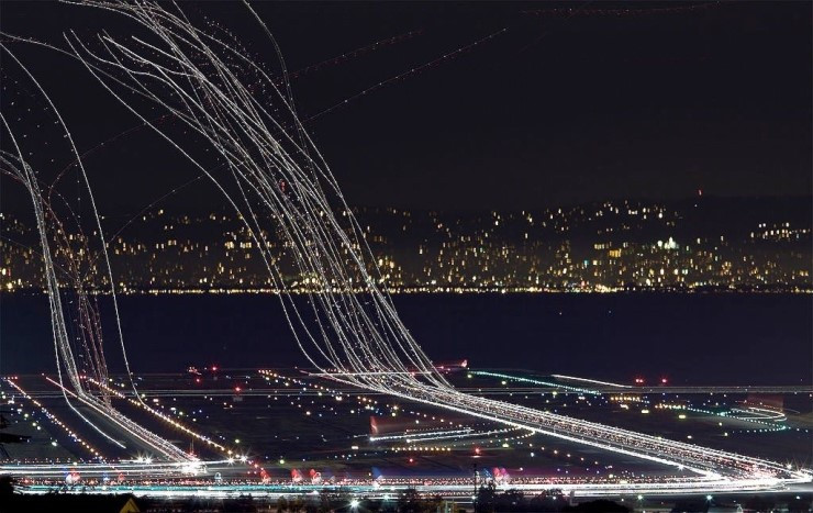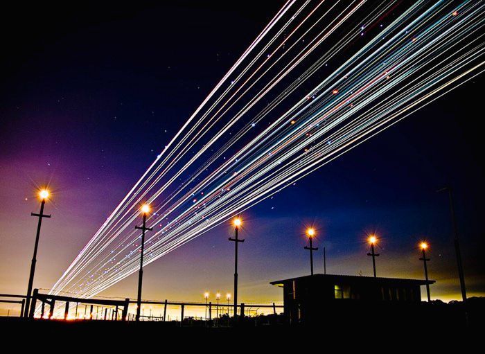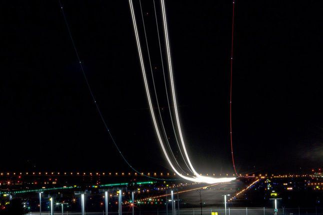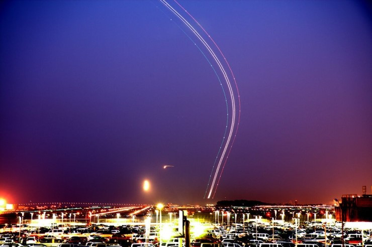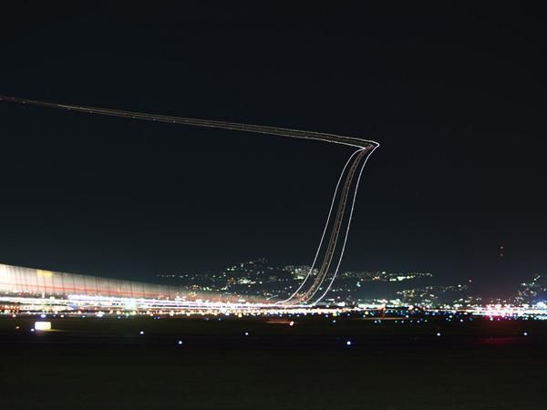 긴 노출을 통해 사진 한 장에 사람들의 움직임이나 불빛의 연속을 담아내는 작업은 쉽게 접할 수 있습니다. 하지만 비행기 뒤에 정갈하게 놓인 불빛의 연속은 새로운 느낌을 자아냅니다.