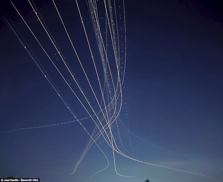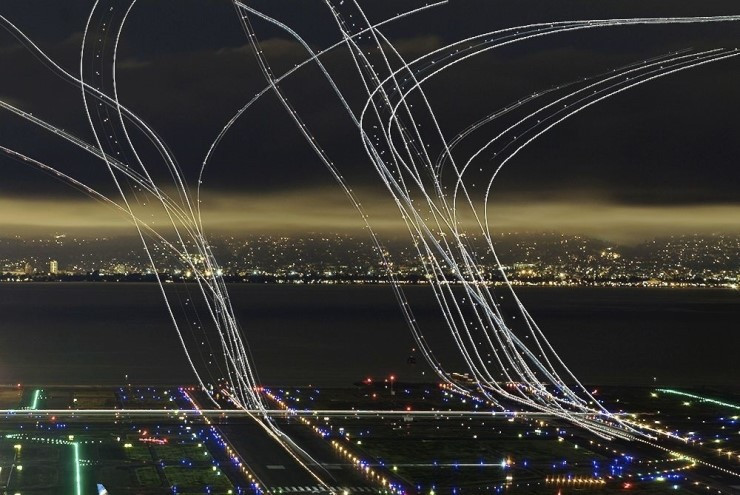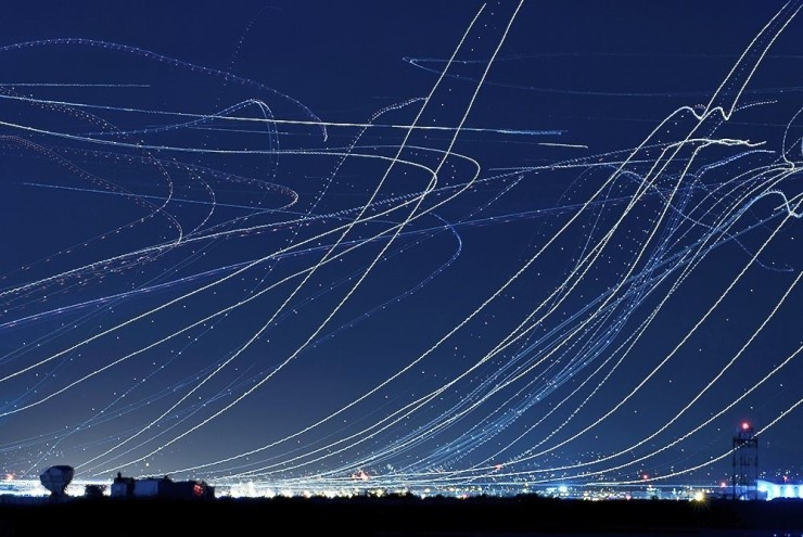 일본 효고현 이타미 공항에서 촬영된 이 사진은 일본 출신의 타케시(twitter_@tttks)에 의해 업로드되었는데요. 어두운 밤 하늘을 수놓은 비행기의 불빛을 카메라의 B셔터를 이용하여 담아냈습니다.