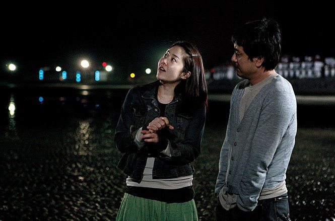 똑같이 키가 크다는 점을 빼고선 닮은 지점이 거의 없어 보이는 두 여성을 '그래도 얼굴은 닮았지 않았냐'며 동일시하는 영화감독 김중래(김승우)는 여성에 대한 감수성이 다소 얄팍해보인다. 그에게는 별을 두고 세상에서 유일하게 믿을 수 있는 존재라고 말하는 김문숙(고현정)의 소신발언도 무효가 된다. 그마저도 진심인지 알 수 없는 김문숙과의 하룻밤은 관객에게 엉덩이를 보이면서 빌었던 소원을 통해 간편한 방식으로 최선희(송선미)와의 하룻밤으로 대체된다. 이렇듯 한때 홍상수의 영화를 들어 '찌질한 남자들의 구애 이야기'로 퉁쳤던 견해는 적당해보이지만 <해변의 여인>에는 그에 더하여 여성에 대한 홍상수의 낙관주의 비슷한 것이 녹아 들어 있다.