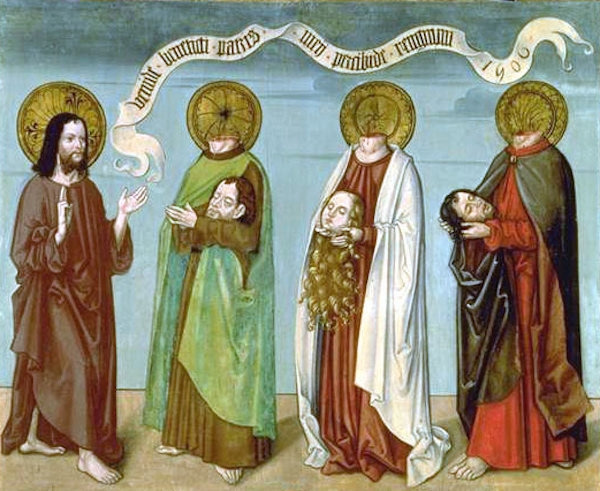 하지만 기독교에서 목이 잘린 채 다니는 사람은 '죽음'을 극복한 성인으로 묘사되어 공경의 대상으로 보인다.(출처)
