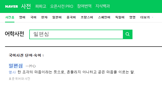 일편심을 한자 그대로 풀어내면 "한 조각의 마음"이 된다.