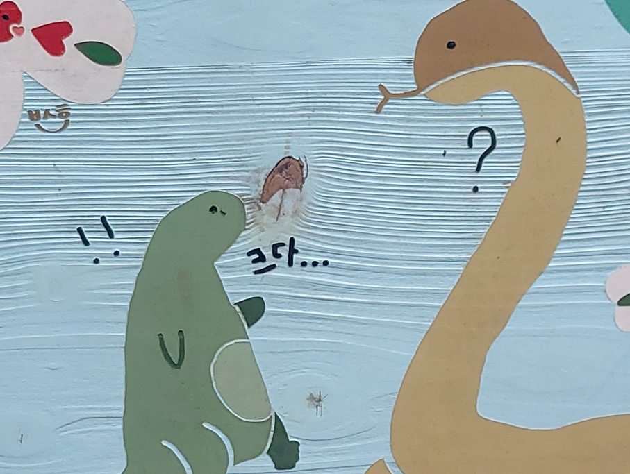 그냥 숲 속에 살고 싶다는 생각도 들었다. 전망대에서 내려오고 바로 돌아가기는 아쉬워서 30분 정도 걸린다는 빌레길에 들어가 보기로 했다. 사실 이때부터는 체력도 조금 떨어지고 길이 테우리길보다 훨씬 어려워져 괜히 왔나 싶기도 했다. 하지만 빌레길에 산다는 동물들을 모티브로 만든 마스코트 캐릭터가 정말 귀여웠다. 도마뱀을 만나고 싶었는데 너무 작아서 찾지 못한 건지 우리 눈엔 보이지 않았다.