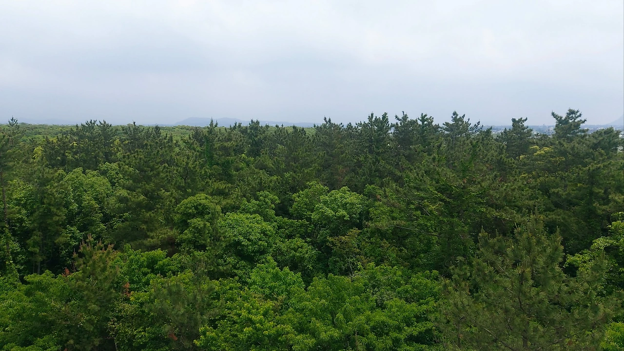 탁 트인 공터가 나오고 그 가운데 전망대가 혼자 높이 솟아 있다. 계단을 올라갈수록 바람이 강해졌다. 꼭대기 층에서는 도립공원 한복판에서 우리를 둘러싼 숲을 빙 돌아볼 수 있다. 전망대 바로 앞에 있지만 1층에서는 잘 보이지 않았던 연못까지 한눈에 보였다. 그리고 이 자리에서 보이는 오름들의 이름을 확인할 수 있게 사진이 붙어 있었는데, 사진과 멀리 보이는 오름을 비교해서 이름을 찾아내는 재미가 있었다. 전날 우리가 갔던 금오름도 보이니 더 반가웠다.