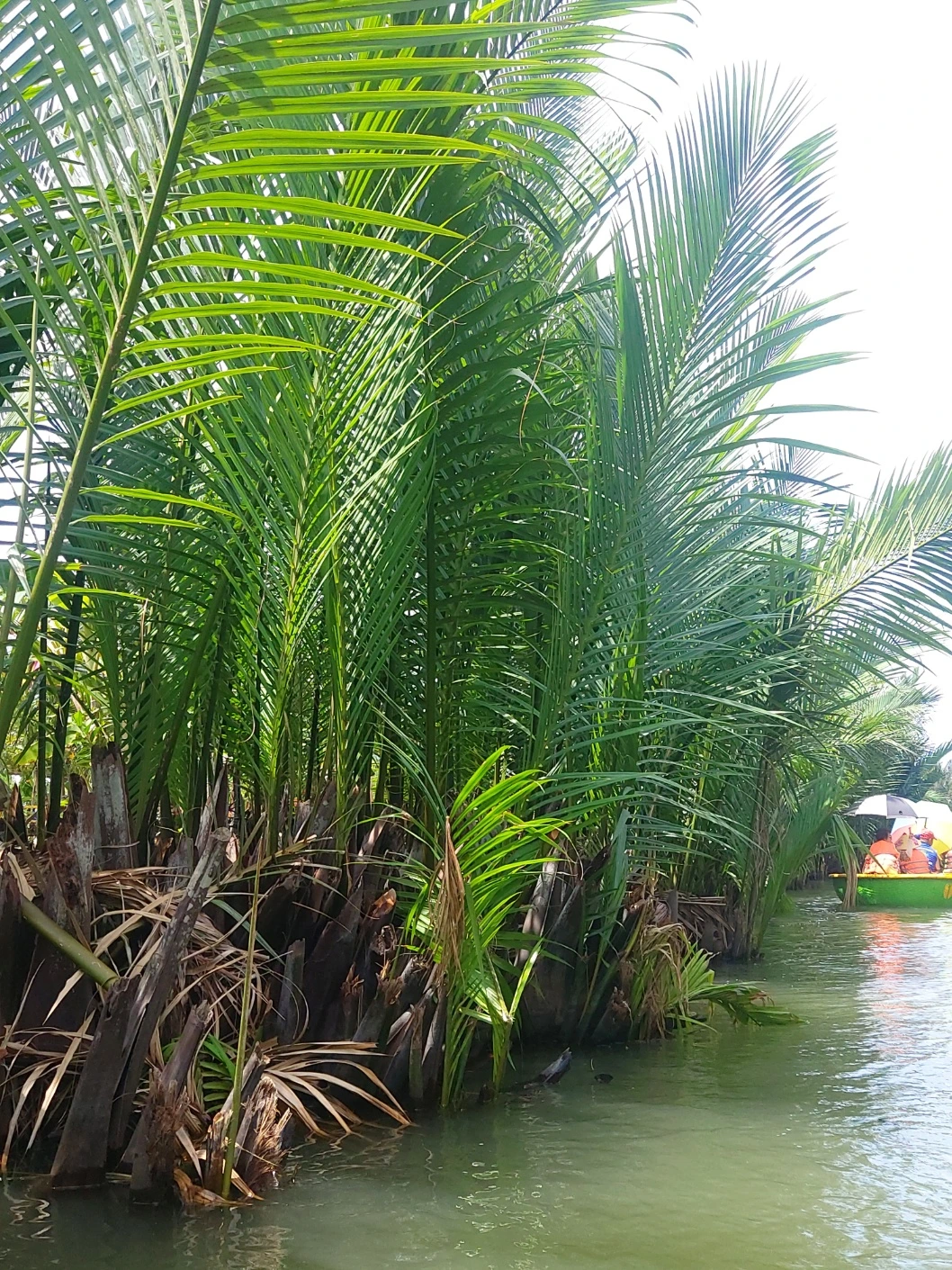 다음으로는 엄마가 타고 싶어 하던 코코넛배를 타러 갔다. 이동하면서도 제일 더울 시간에 그늘도 없는 강을 따라 흘러갈 생각에 조금은 앞이 막막했다. 하지만 배에 오르자 물 위라서 인지 생각만큼 덥지 않았고 배마다 양산이 하나씩 있어 그걸 펼쳐놓고 유유자적하게 코코넛 마을을 지났다. 40분 정도 투어가 진행되는 동안 중간중간 노래를 부르거나 배를 빙글빙글 돌려주는 사공들 덕에 지루하지 않았다. 한국인 관광객이 많다 보니 한국 트로트를 틀고 그에 맞춰 춤추는 한국 여행객도 많았다. 그걸 보고 있자니 왠지 웃기기도 하고 기분이 좋았다. 노래 부르는 사람에게 팁을 주면 우리 배 사공이 젖은 노에 지폐를 철썩 붙여서 전해주는데 그걸 보는 재미도 쏠쏠하다. 우리 사공님에게도 팁을 전해드리자 우리가 탄 배를 빙글빙글 돌려줘서 놀이기구 타는 것처럼 재밌었다. 중간에 야자수 가까이로 가서 나뭇가지에 미끼를 매단 낚싯대로 게를 잡아 보여주기도 한다. 우리도 게 잡기를 시도해 봤지만 생각보다 어려웠다. 물 밖에 나오니 게가 느려지고 얌전해지길래 잠깐 구경한 후 얼른 다시 물속으로 보내줬다.