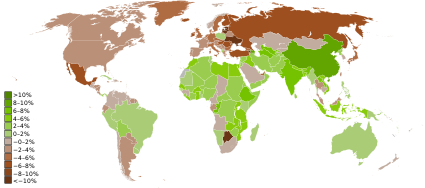 The Great Recession was a period of marked general decline observed in national economies globally, i.e. a recession, that occurred from late 2007 to 2009. The scale and timing of the recession varied from country to country (see map).