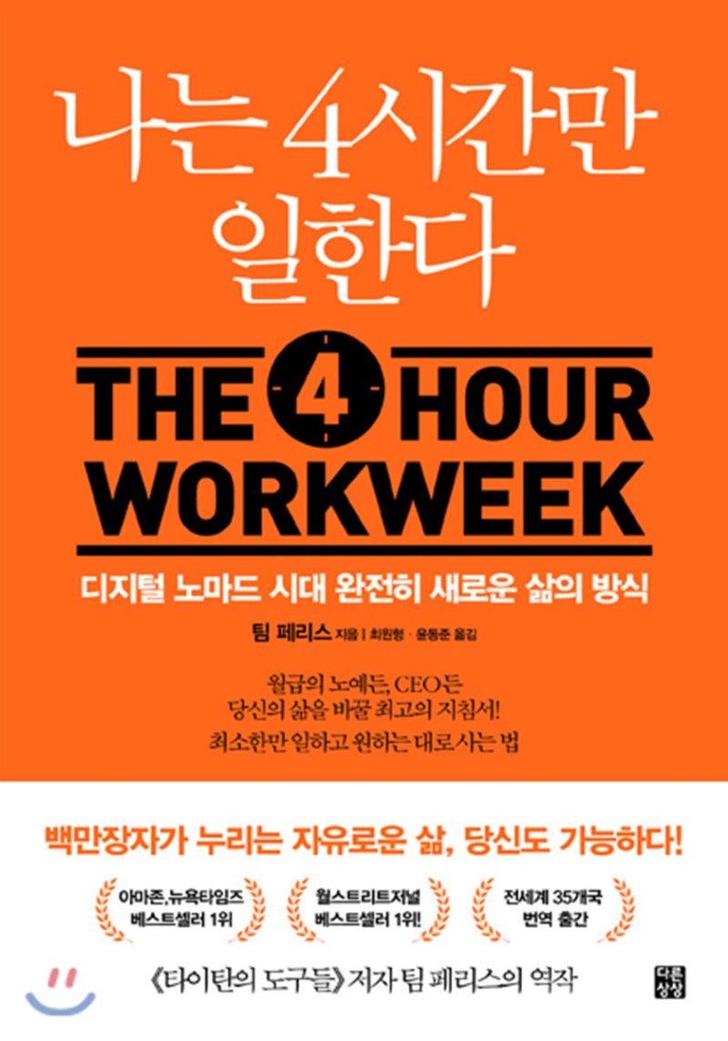 내가 처음 팀페리스의 책 <나는 4시간만 일한다>를 읽은 것은 2014년말, 2015년초였다. 그 당시에는 '4시간'이라는 제목이었고 절판된 상태라 도서관에서 어렵게 구해서 읽었다. 회사에 다니면서 그 책을 처음 접한 순간의 충격을 잊지못한다. 내가 불가능하다고 생각했던 것이 가능하다라는 얘기를 하는 이가 있었고 나는 그의 책을 읽고 있었다.