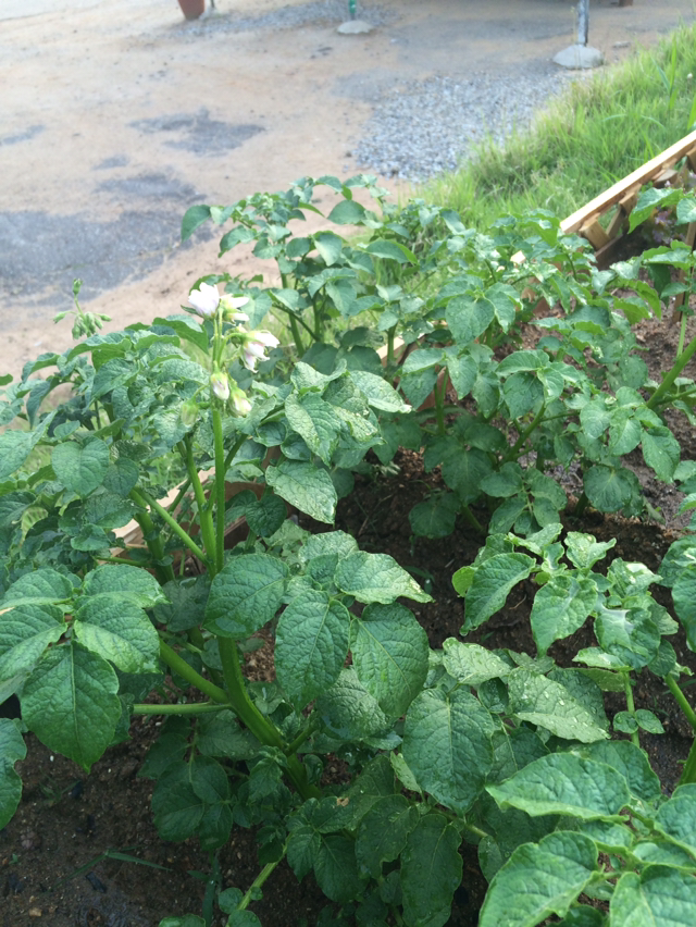 감자는 줄기가 뻗어서 꽃까지 달려버렸다.