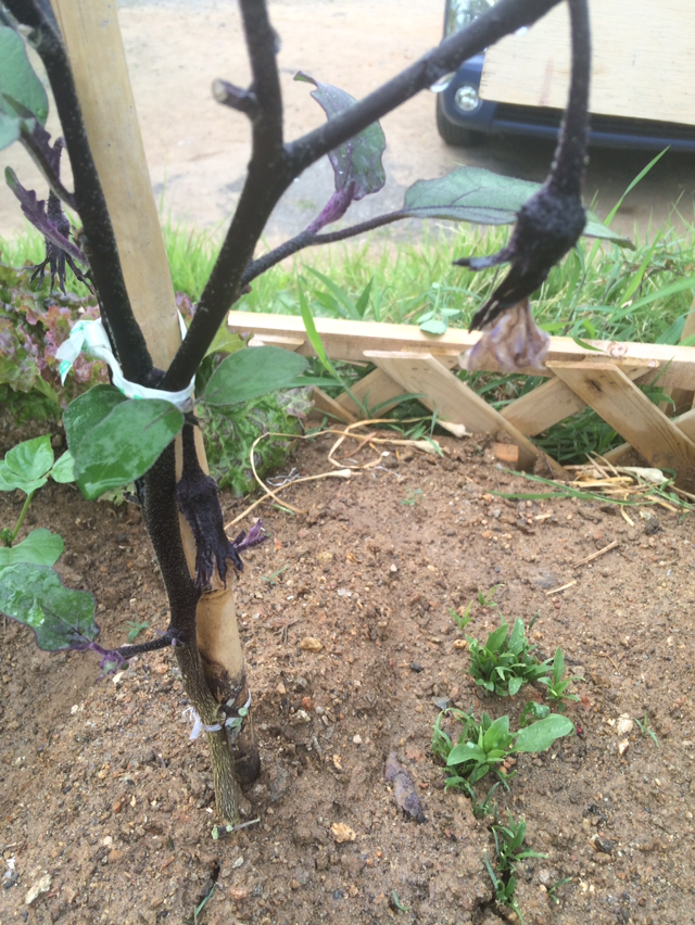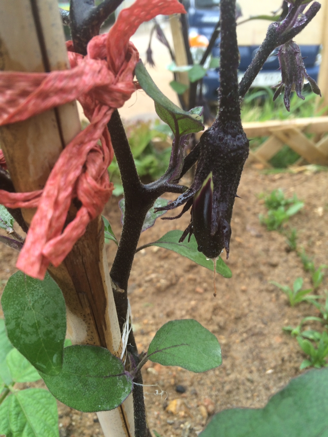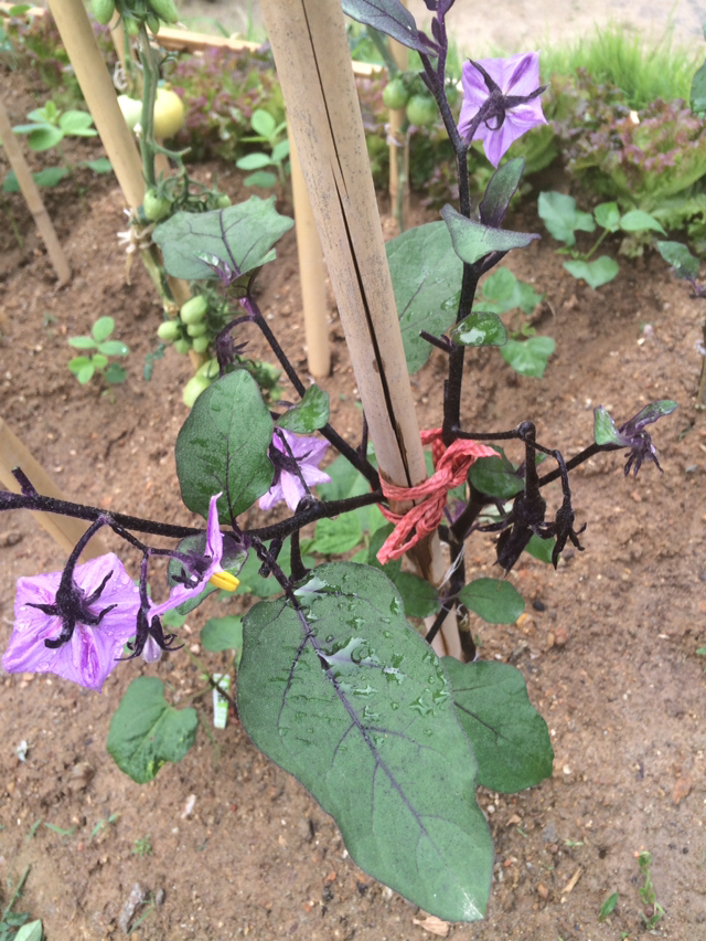 가지 열매가 빼꼼하고 나에게 인사를 한다. 너무 귀여워서 기분이 묘했다.