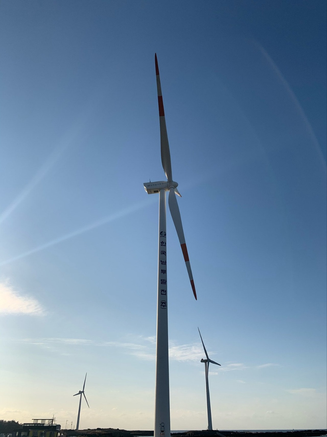 비양 섬을 조금 지나면 거대한 풍력발전기가 바닷바람 휘감아 휙휙 맴돈다.