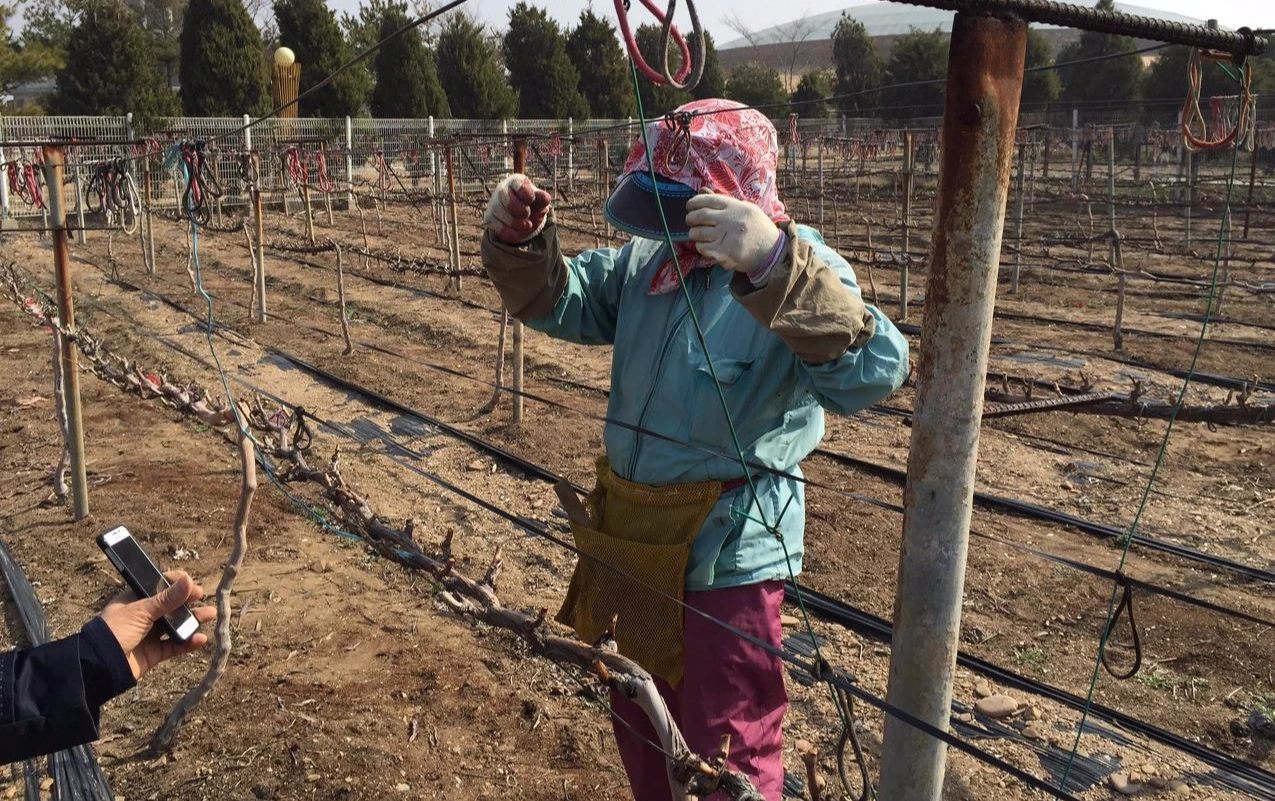‘벌레’가 그 껍질 속에 숨어 포도나무를 갉아먹기 때문에 ‘벌레’ 막으려고 벗기고 있다고 설명했다.