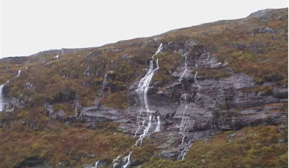 -'피오르드'는 산꼭대기에 구멍이 생겨서 흘러나온다. 산에 물구멍을 뚫어 놓은 것 같다.