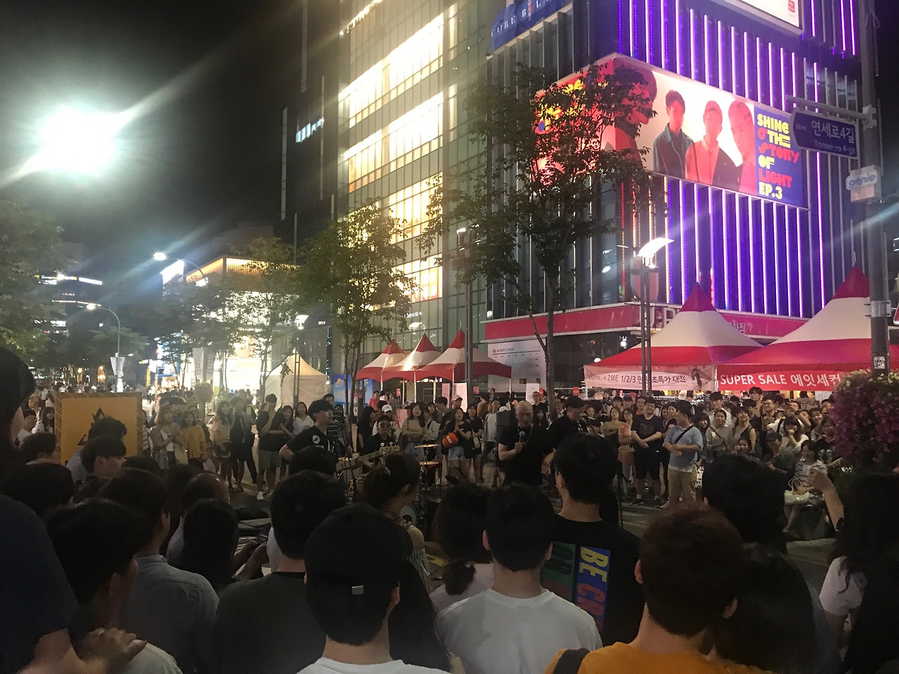 속 터지는 새주소 기준으로”연세로”치면 찾기 힘들고, 그냥 신촌역 3번 출구에서 연세대학교 정문까지 이어지는 길목에서 이른바 “길거리 음악” 버스킹- 공연이 펼쳐진다.