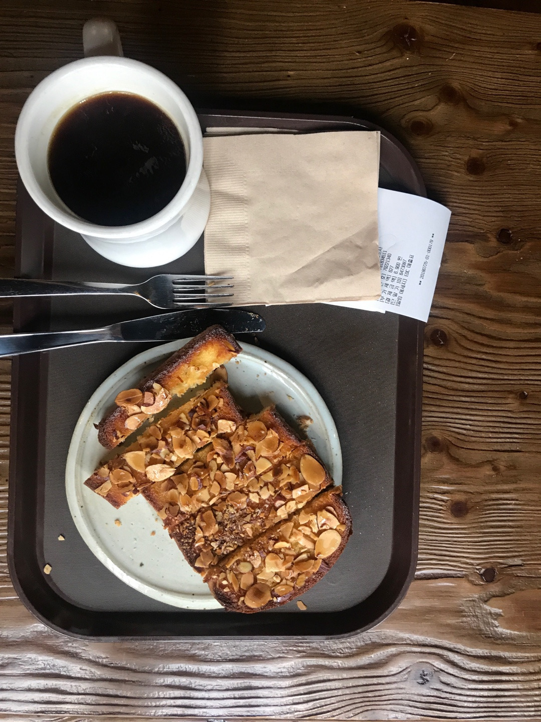 시간을 훌쩍 뛰어넘어 그 역사의 뒤안길을 생각하며 잠시라도 눈을 감고 음미해보면, 빵 또한 깊은 맛을 느낄 수밖에 없다. 그러면서 달달한 아메리카노 커피를 곁들여 먹는 맛이 일품이다.