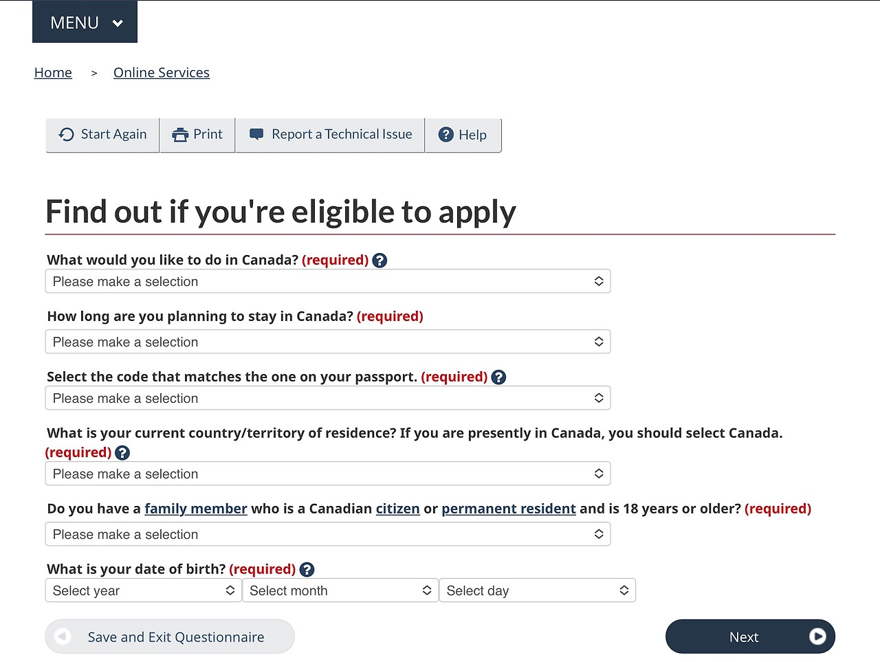 그 다음부턴 물어보는 대로 답하면 된다. 입국 목적, 가족의 캐나다 거주 여부, 생년월일, 범죄기록 사실 등등, 귀찮긴 해도 답하는 데 무리가 없을 것이다. 아니, 없어야 한다. 만약 이 질문들에 답변이 힘들다면, 신청을 진행해도 비자가 나올 가능성이 현격히 줄어들기 때문이다.