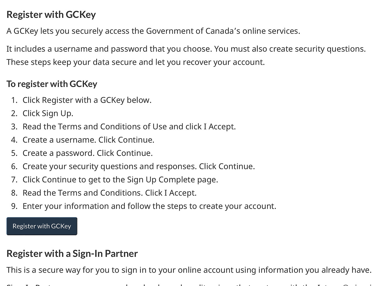 IRCC의 계정은 GCKey라고 부르는데, 이를 만드는 과정은 쉬우니 간단히 설명하자면, ID와 비밀번호를 설정하고 보안 질문/답변을 작성하면 거진 끝이다. 다만 이 보안 질문과 답변은 로그인을 할 때마다 물어보기 때문에 까먹으면 로그인이 불가하다. 그러니 잘 기억할 수 있는 질문과 답변을 작성하거나, 어딘가에 메모해주자.