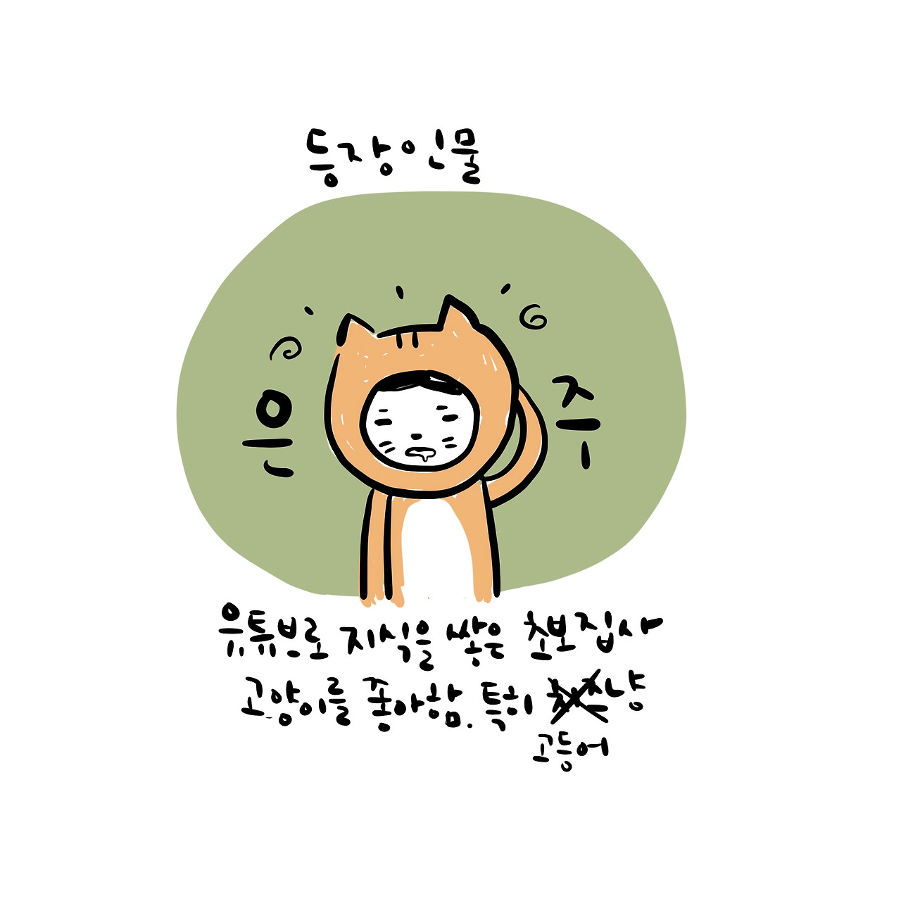 *인간고양이 : 고양이는 같이 사는 사람을 같은 고양이라고 생각한다는 말이 있다.