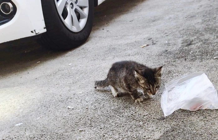 지인의 SNS에 올라온 글이 남이와의 첫 만남이다. 어미와 함께 다니던 고양이가 어느 순간부터 혼자 다닌다는 이야기와 함께 올라온 새끼 고양이는 작기만 했다. 이렇게 작은 고양이라면 어미가 다시 찾아올지도 모른단 생각을 했지만, 2주가 넘어가도록 SNS 속 남이는 혼자였다. 아무래도 독립시켰거나, 어미의 신변에 문제가 생긴 것으로 보였다. 빼빼 마른 새끼고양이는 동네 사람들이 나눠주는 밥을 먹으며 조금씩 자라고 있었지만, 점점 꼬질꼬질해졌다.