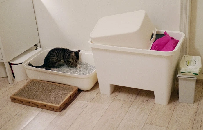 고양이를 키우기 위한 몇 가지 준비물이 있다면 그중 하나가 모래(고양이 화장실)다. 길에 있는 남이를 데리고 와 키울 것이라 확신을 가지지 못했던 나는 미처 모래를 준비하지 못했다. 어찌저찌 어설픈 확신으로 남이를 집으로 데리고 온 그 날, 개천절을 낀 연휴로 근처 동물병원은 모두 문을 닫았고 인터넷으로 주문한 모래는 적어도 2~3일 뒤에 도착할 예정이었다. 그 사이에 별일 있겠느냐는 대책 없는 생각은 남이에게 화장실이 얼마나 중요한지 절실히 깨닫게했다.
