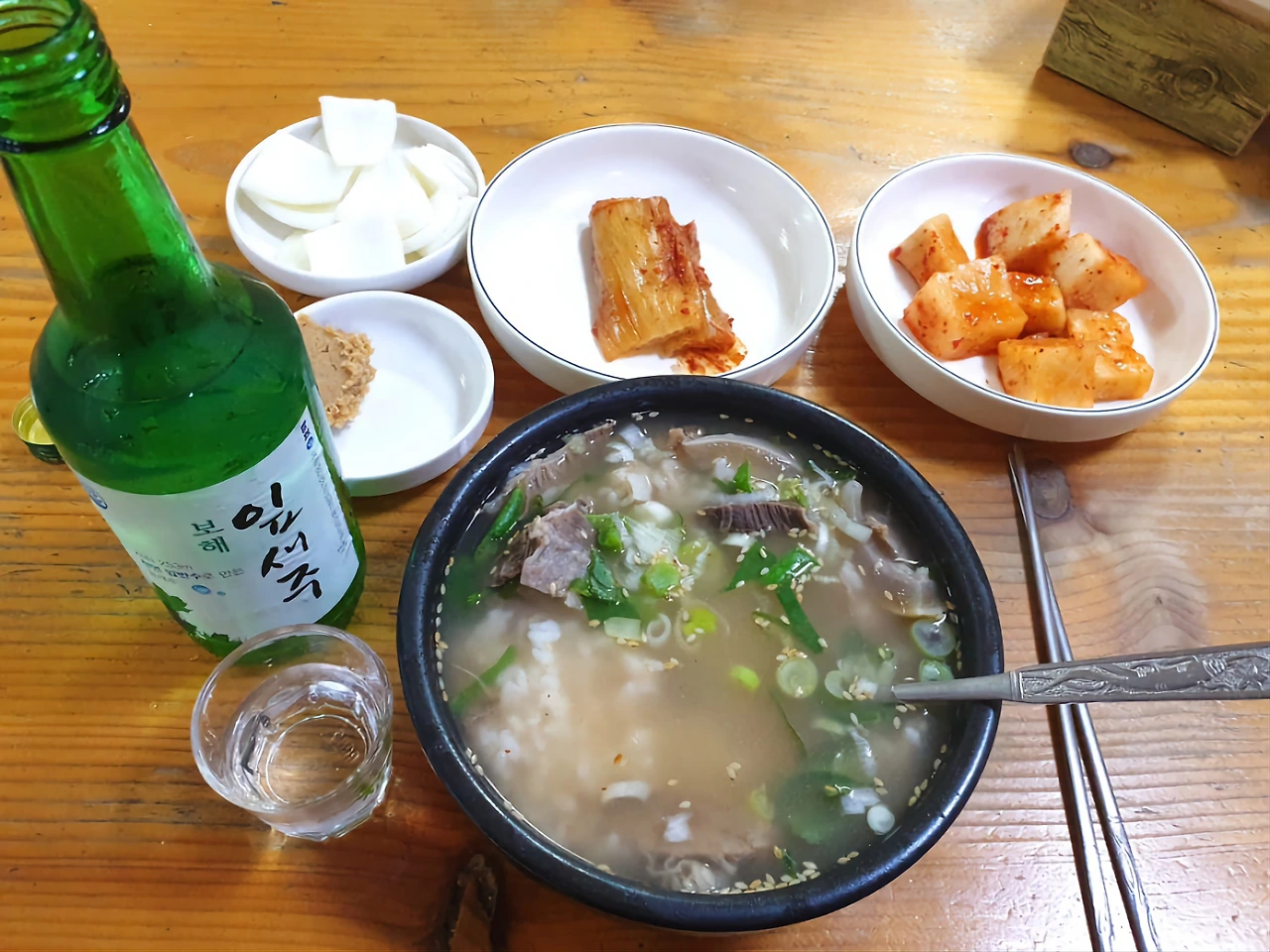 다 먹을 때까지 계속되는 병나발과 함께 맛있는 곰탕까지 싹싹 비웠다.