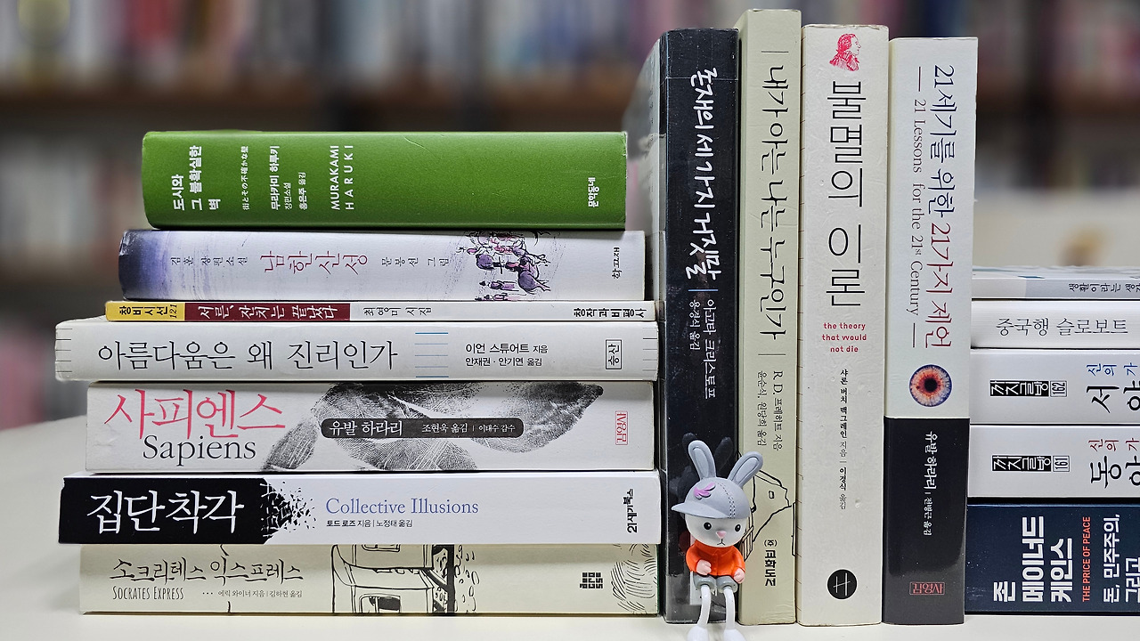 혹시나 해서 최근에 읽은 다른 책들도 찾아보았다. 몇 권이 있었다. 키워드와 관련된 책으론 에릭 와이너의 ‘소크라테스 익스프레스’가 있다. 표지에는 디젤기관차에 객차가 줄줄이 연결된 기차가 보인다. 이 기차가‘소크라테스 익스프레스’다. 기차의 이름을 ‘소크라테스’로 지어서, 철학은 소크라테스가 이끄는 기차로 형상화되었다. 그리고 소크라테스의 대화법은 책을 이끌어 가는 방법론이었다. 또 다른 책은 아고타 크리스토프의 ‘존재의 세 가지 거짓말’이다. 여기에는 에곤 실레의 ‘The self-seers 1’이라는 그림이 표지를 장식하고 있다. ‘The self-seers 1’에는 쌍둥이가 등장한다. 그리고 분위기도 그로테스크하다. 책도 이와 비슷하다. 주인공은 쌍둥이이고, 이들이 보여주는 내용 또한 그로테스크하다. 쌍둥이가 키워드였다. 그리고 무라카미 하루키의 ‘도시와 불확실한 벽’의 표지는 전체가 진녹색으로 채색되어 있다. 중간에 사발 모양의 검은 공간이 있고, 그 안에 다채로운 색상의 행성 띠 같은 것이다. 이는 '꿈을 읽는 이'와 그가 읽는 '꿈의 알'이었다. 이 또한 키워드였다.
