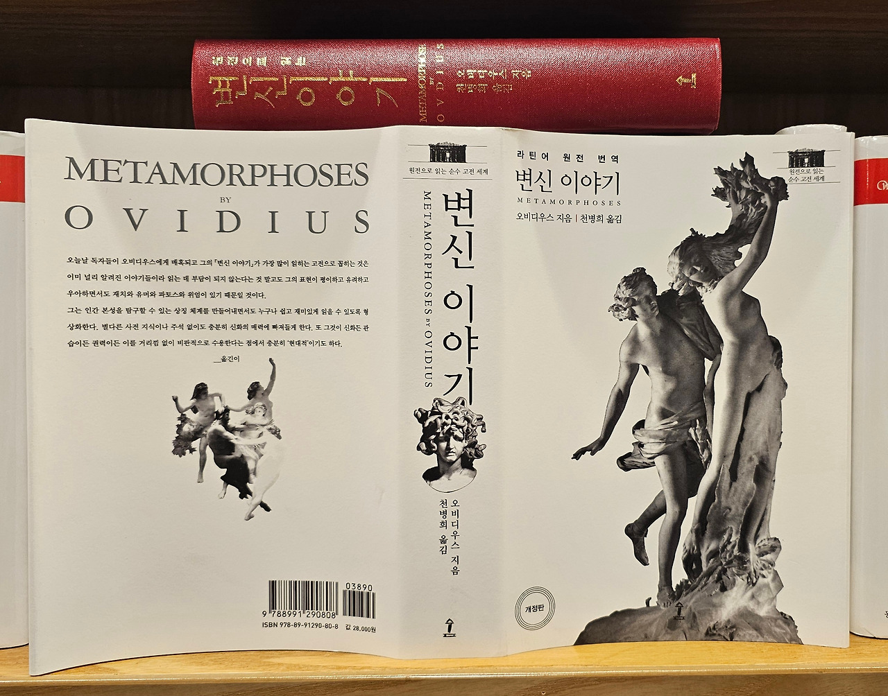 박물관 1층 휴게 의자에 앉아 오비디우스의 ‘변신이야기’를 꺼낸다. 하얀 표지로 된 두툼한 책이다. 앞표지에 조각상이 보인다. 아폴로와 다프네다. 이탈리아 보르게세 미술관에 있는 베르니니의 대리석 조각상이다. 조금 있으면 다프네를 안을 수 있다는 아폴론의 희망과 아폴론에게 벗어나지 못한다는 다프네의 절망과 두려움이 배어있는 표정, 다프네가 월계수로 변신하는 급박한 순간을 사실적으로 표현했다. 이렇게 정밀하게 포착된 변신의 순간이 ‘변신이야기’의 서사를 압축하여 보여준다.
