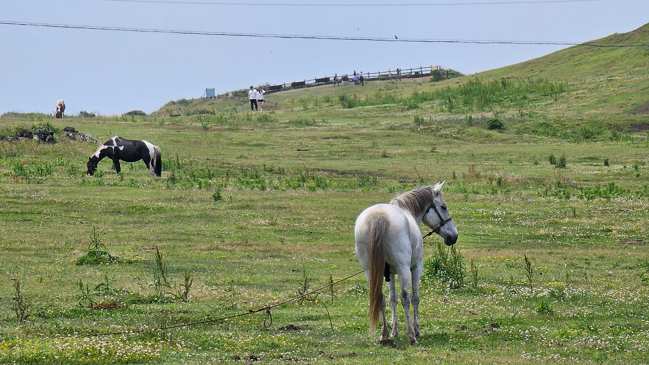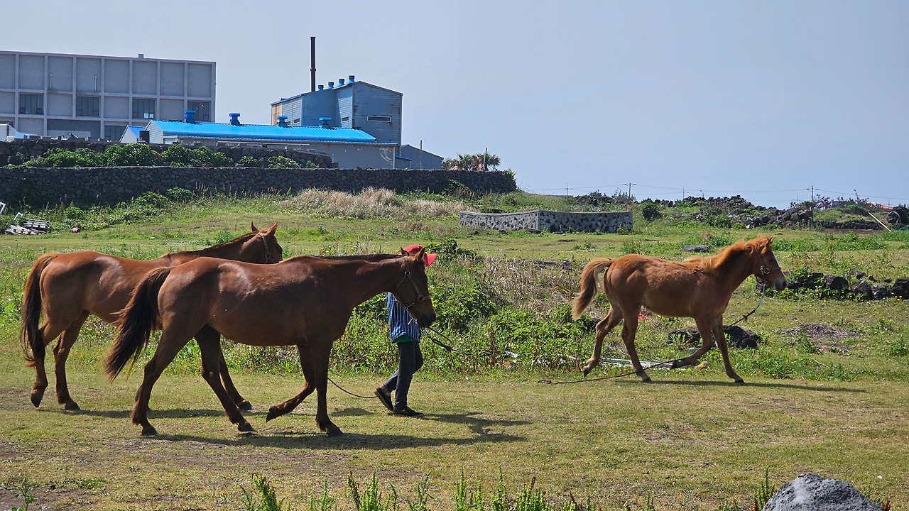 드디어 배가 출항한다. 40분 정도 늦었다. 성산일출봉을 둘러싼 안개가 서서히 사라지고 있다. 거의 사라질 때쯤 배는 우도에 도착했다. 얼마 걸리지 않았다. 내리고 나서 1-1코스 시작점 간세를 찾았다. 보이지 않는다. 안내소에 가서 물었다. 비 가림 여객 통로에 있는 황소 동상 옆에 있었다. 맘이 급해진다. 안개로 인해 출항이 늦어져 그런 것 같았다. 일정이 꼬이지 않을지 내심 걱정되었다. 얼른 스탬프를 찍었다. 도로로 나오니 색상이 다양한 삼륜차가 눈길을 끌었다. 사람들이 호기심에 기웃거리고 있다. 나는 눈길을 거두고 올레 리본을 찾았다. 시작은 해안 길이다. 얼마 걷다 보면 길은 내륙으로 접어든다. 여기서 말들을 보았다. 마부가 말 세 마리를 끌고 어디로 가고 있다. 이렇게 자유롭게 길을 걷는 말은 처음 본다. 말과 우도라. 어디서 읽은 것 같았다. 숙종 때 우도를 말 사육장으로 지정해서 말을 관리했다는 것을.