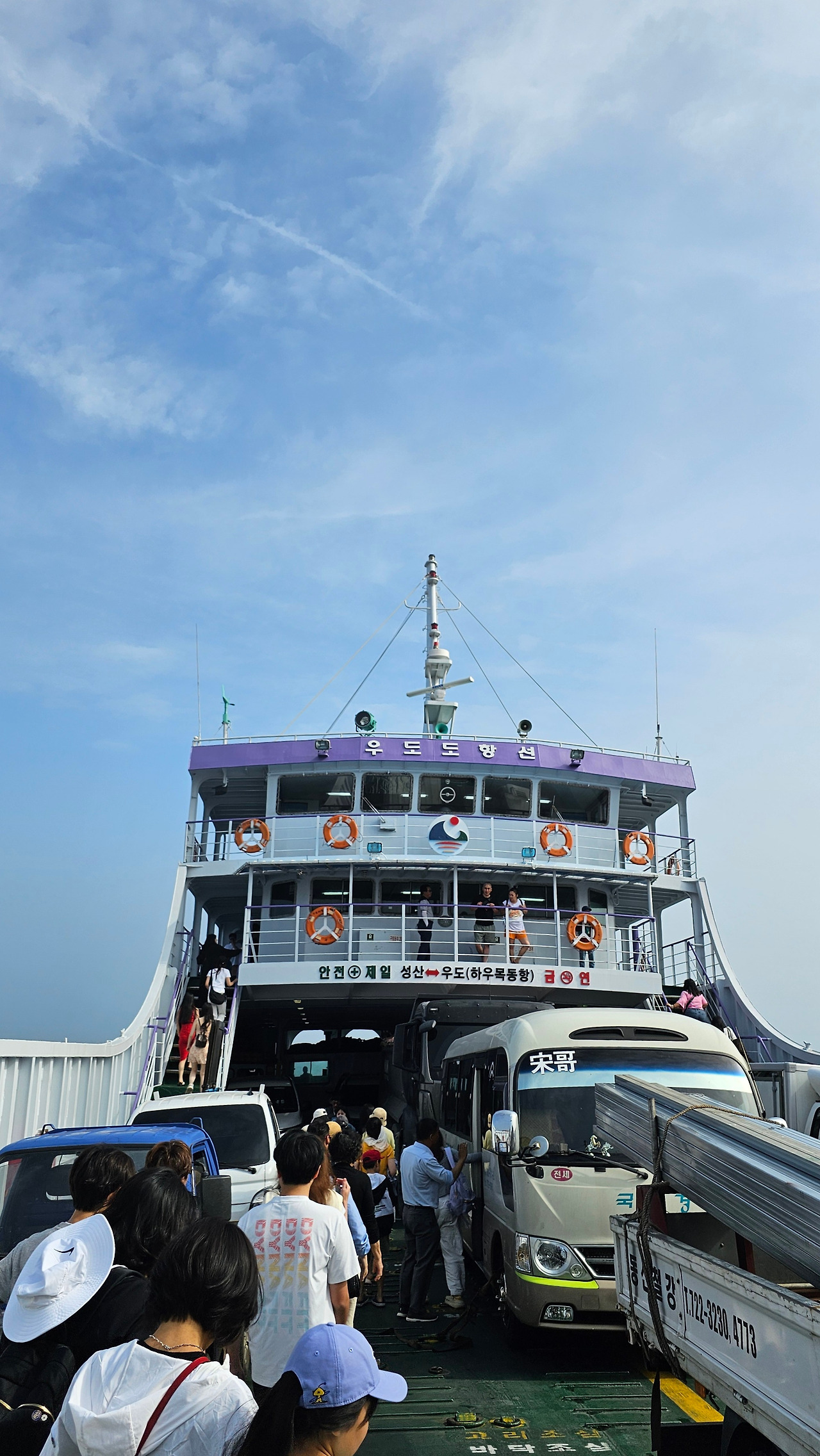 성산항에서 9시에 출항하는 우도행 배를 타기 위해 걸었다. 햇살이 따갑다. 수건으로 얼굴을 가렸다. 20분을 걸어 도착했다. 8시 50분. 급하다. 승선신고서를 작성하고 왕복 탑승권을 구매했다. 급히 배에 올라타니, 수학여행을 온 한 무리의 여학생들이 배를 점령하고 있다. 배의 어느 곳이든 그녀들의 목소리가 들렸다. 여기저기 사진을 찍으며 즐겁게 한 시절을 남기고 있었다. 어쩔 수 없이 2014년 4월의 일이 잠시 떠올랐다. 9시가 되어도 배는 출항하지 않았다. 바다에 짙게 끼어있는 안개 때문이었다. 우도가 보이지 않았다. 출항 지연에 대한 안내방송이 계속 나왔다. 안개가 서서히 걷히는 것을 보며 기다렸다.