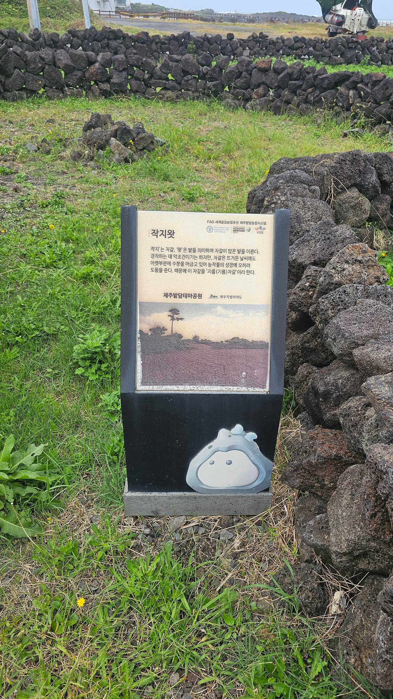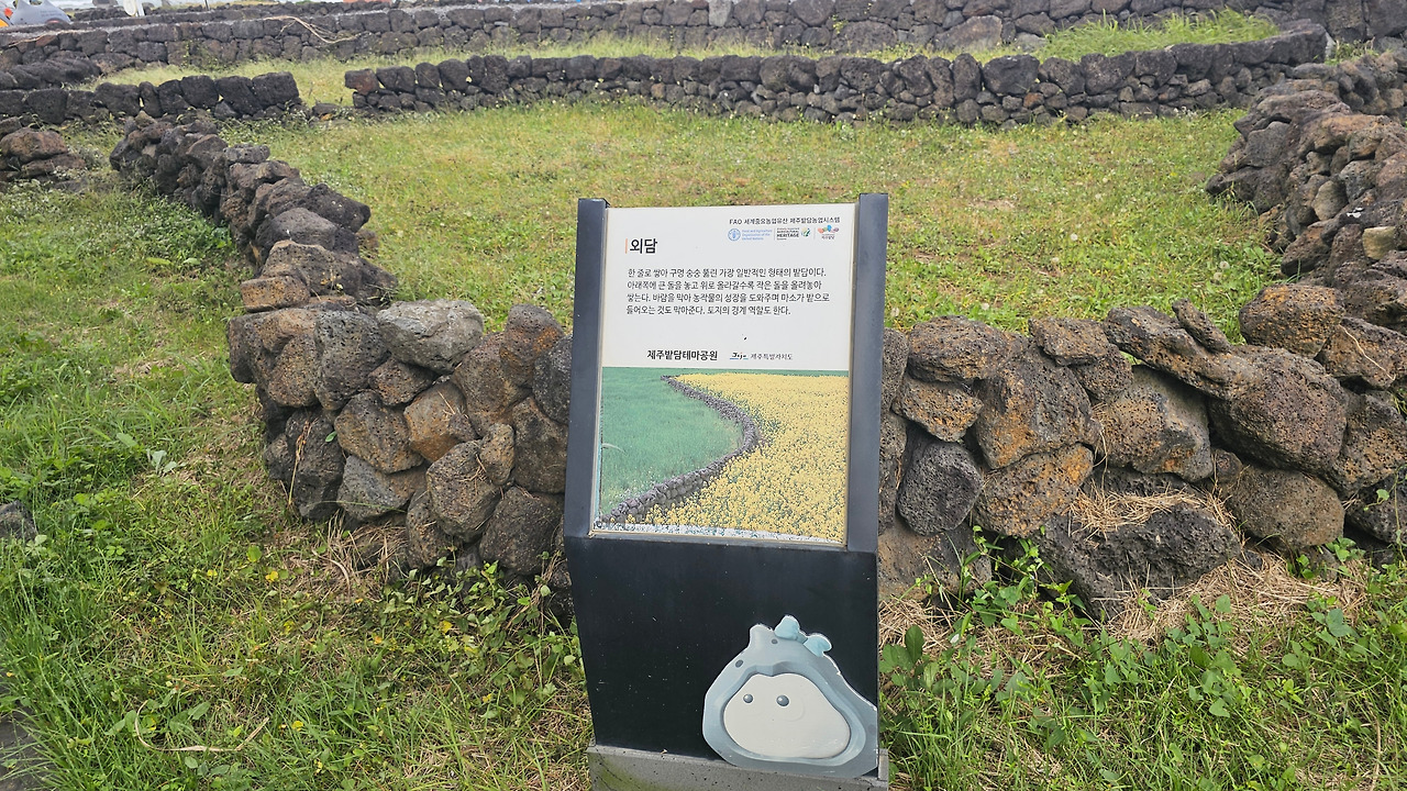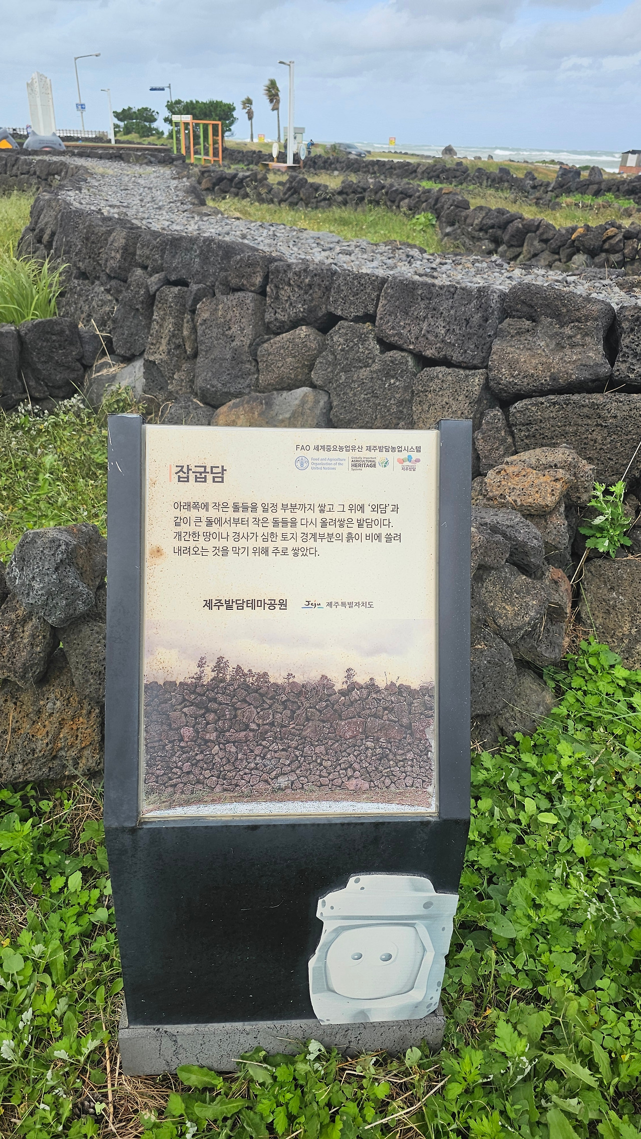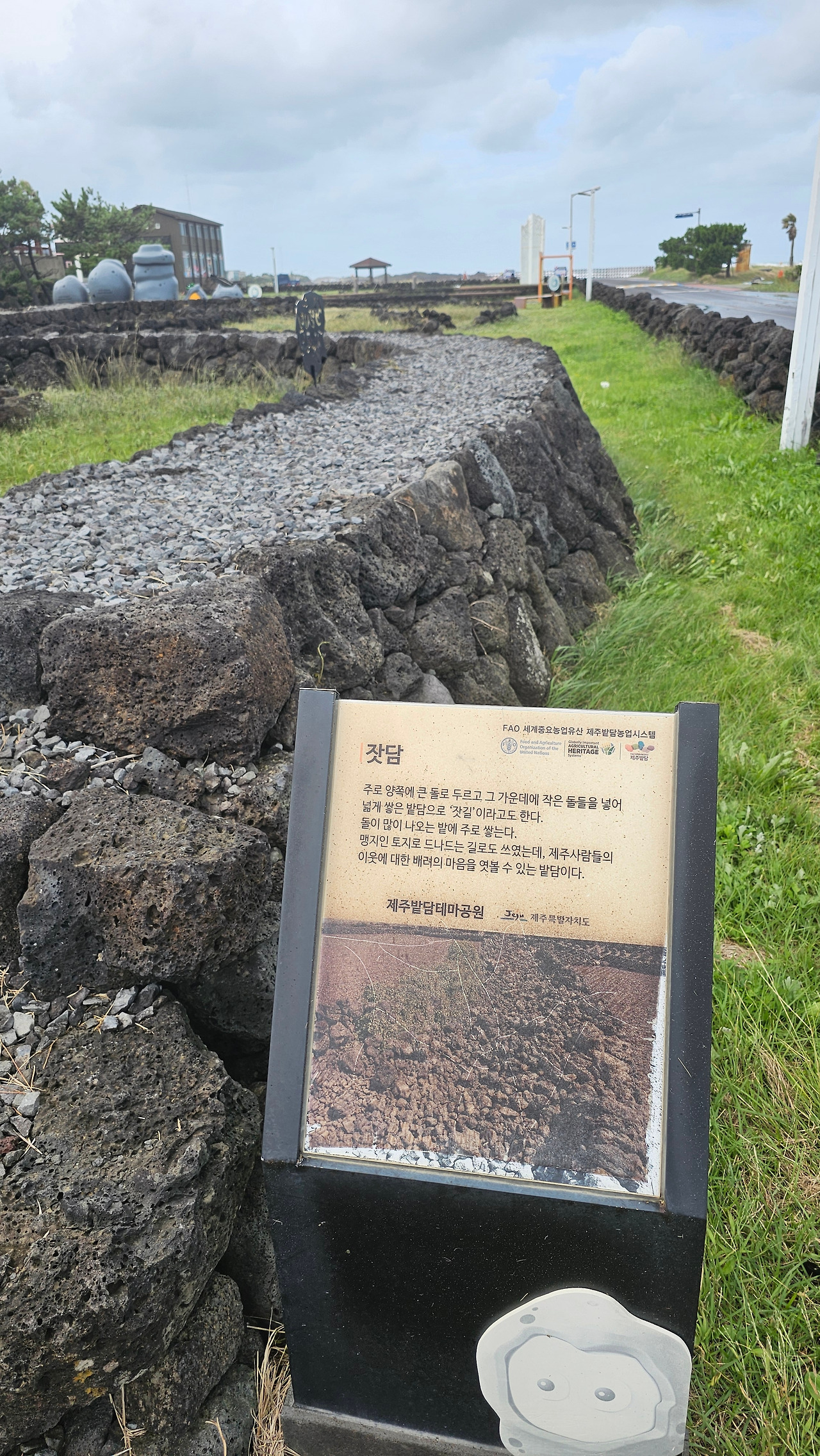 화강암 돌로 만들어진 다양한 종류의 밭담인 잣담, 정낭, 쉼팡, 잡굽담, 외담, 불턱, 방사탑, 산담, 통시, 환해장성, 작지왓 등이 설명과 함께 조성되어 있었다(자세한 것은 사진으로). 하나하나 읽어보며 지나온 길에서 본 것들을 몇 가지를 떠올려보기도 했다.