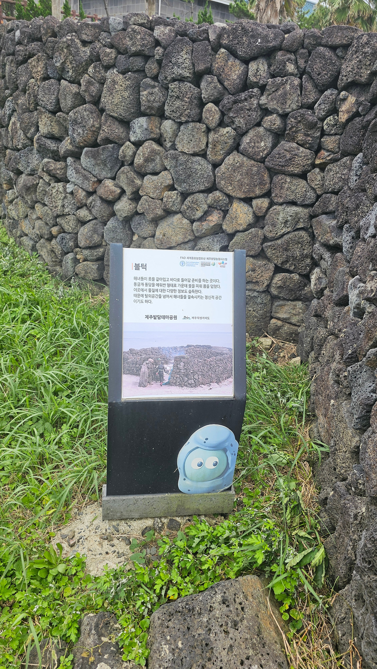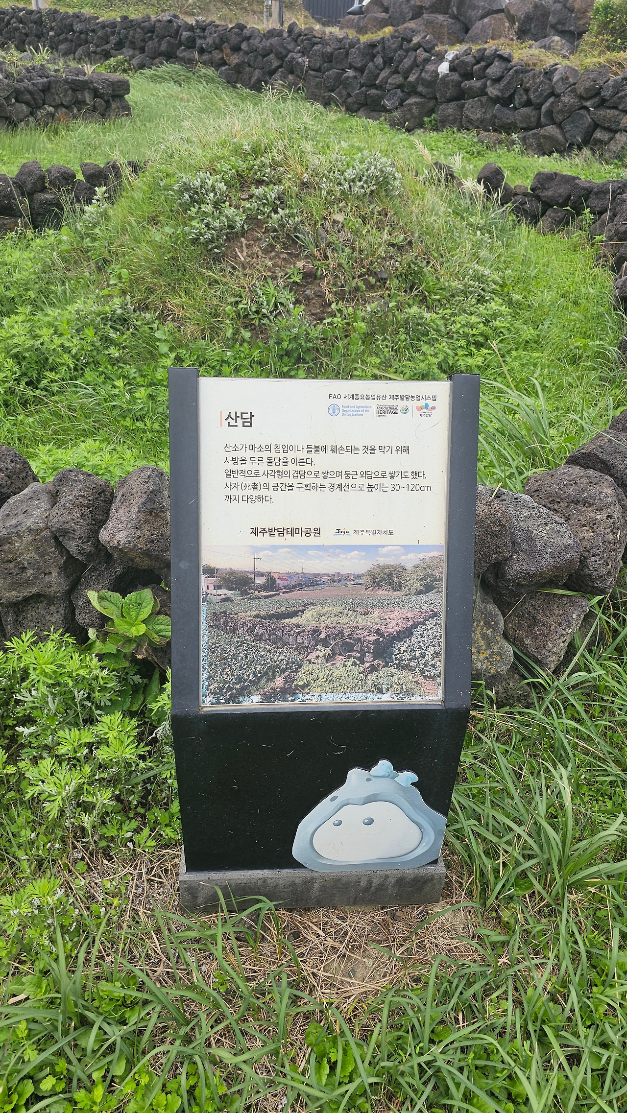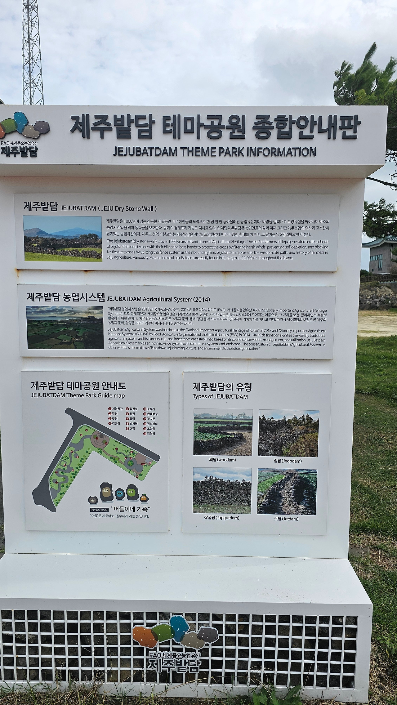 화강암 돌로 만들어진 다양한 종류의 밭담인 잣담, 정낭, 쉼팡, 잡굽담, 외담, 불턱, 방사탑, 산담, 통시, 환해장성, 작지왓 등이 설명과 함께 조성되어 있었다(자세한 것은 사진으로). 하나하나 읽어보며 지나온 길에서 본 것들을 몇 가지를 떠올려보기도 했다.