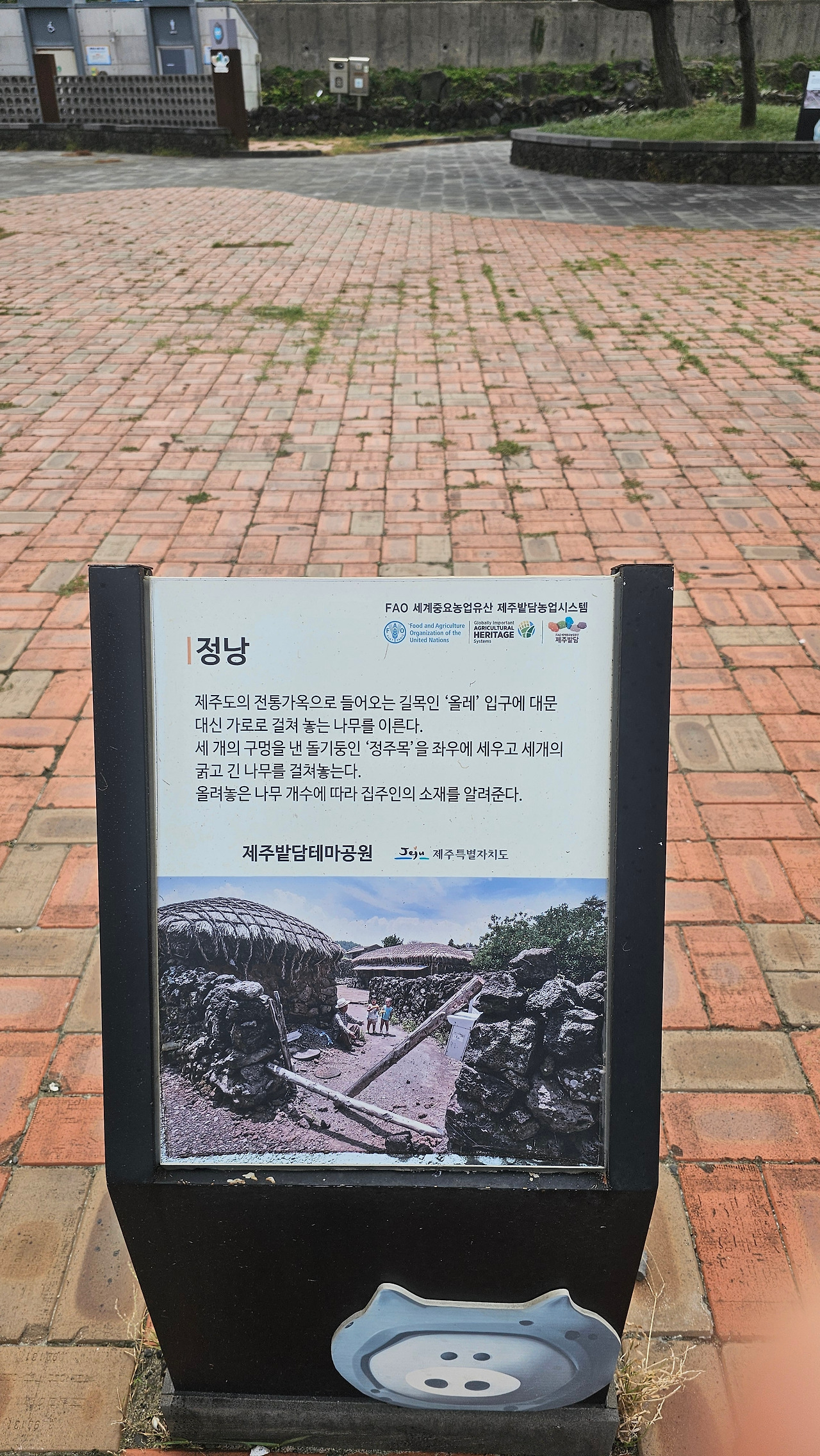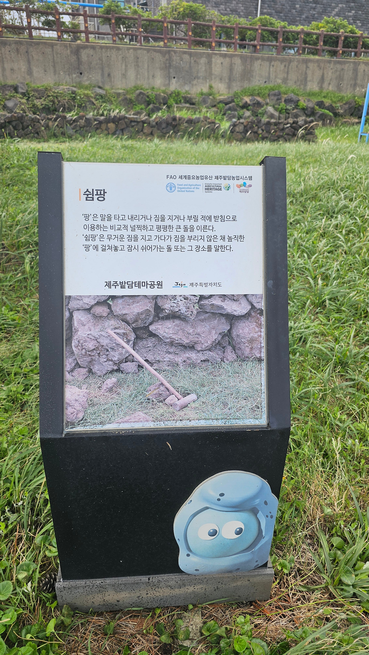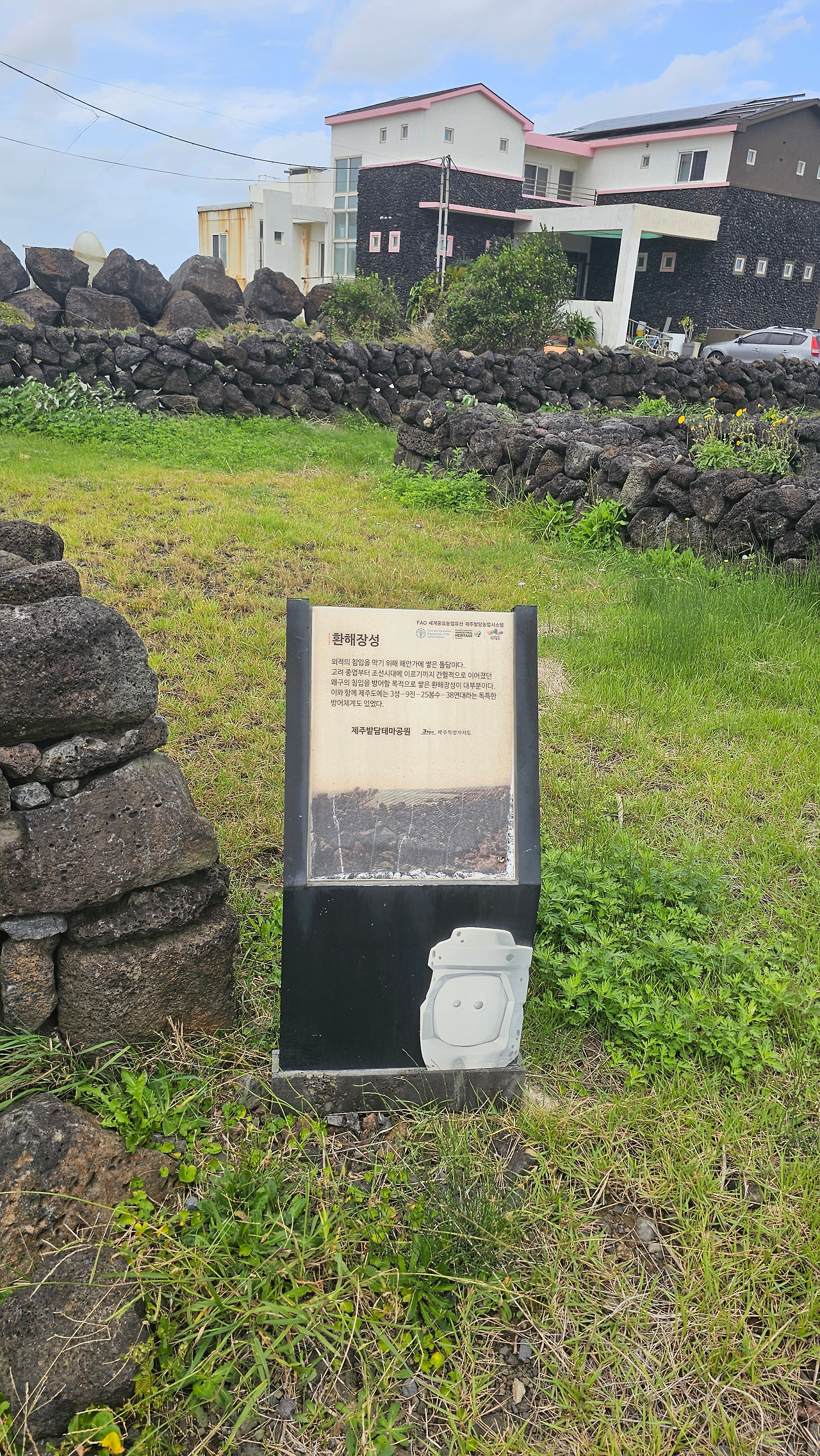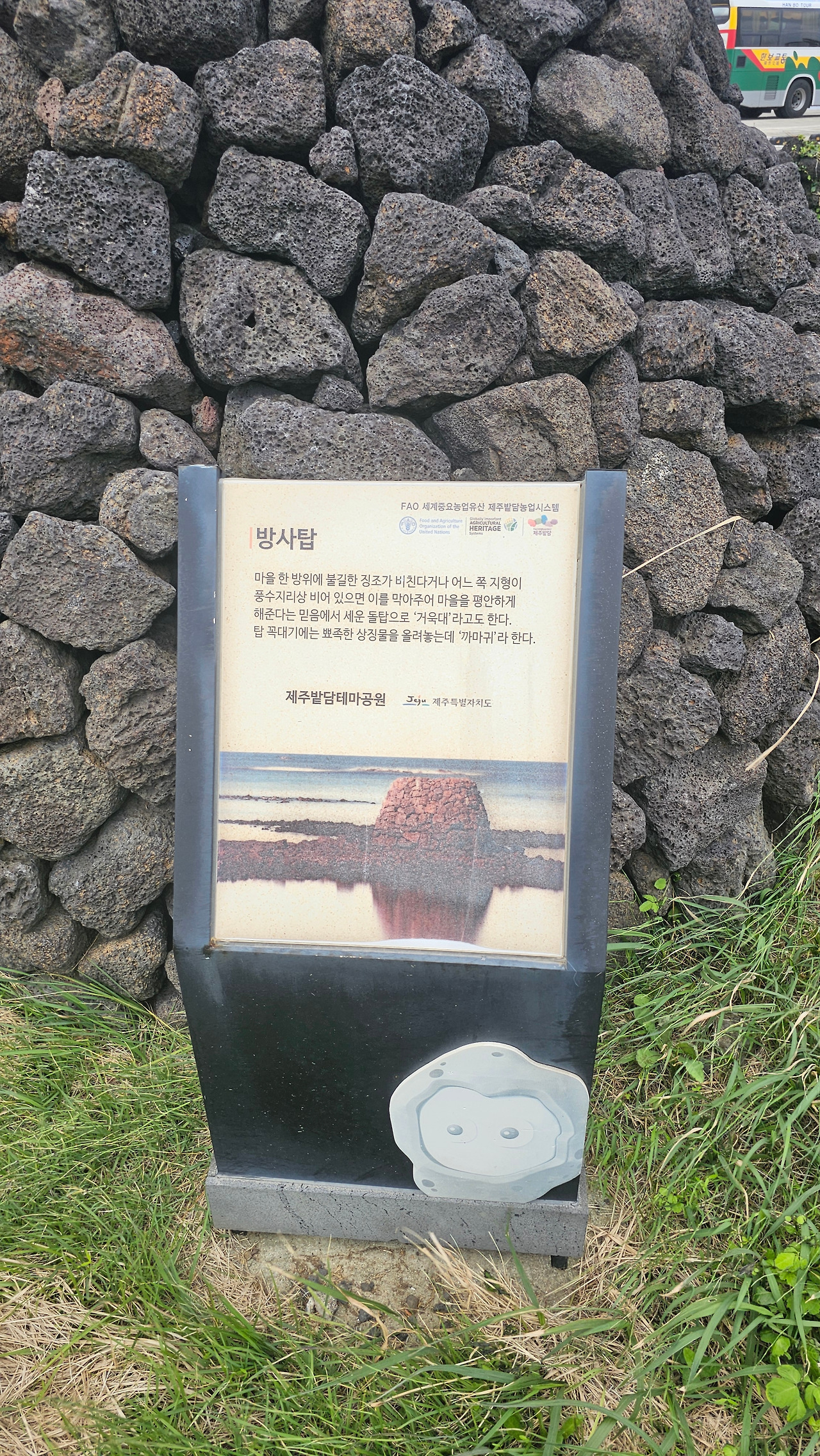 화강암 돌로 만들어진 다양한 종류의 밭담인 잣담, 정낭, 쉼팡, 잡굽담, 외담, 불턱, 방사탑, 산담, 통시, 환해장성, 작지왓 등이 설명과 함께 조성되어 있었다(자세한 것은 사진으로). 하나하나 읽어보며 지나온 길에서 본 것들을 몇 가지를 떠올려보기도 했다.