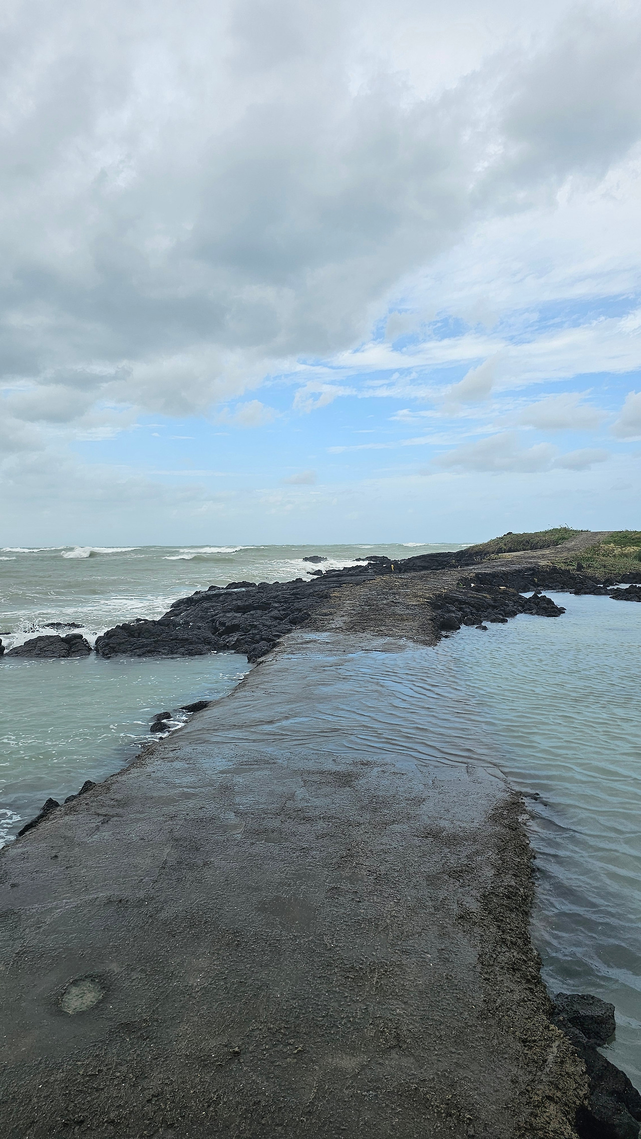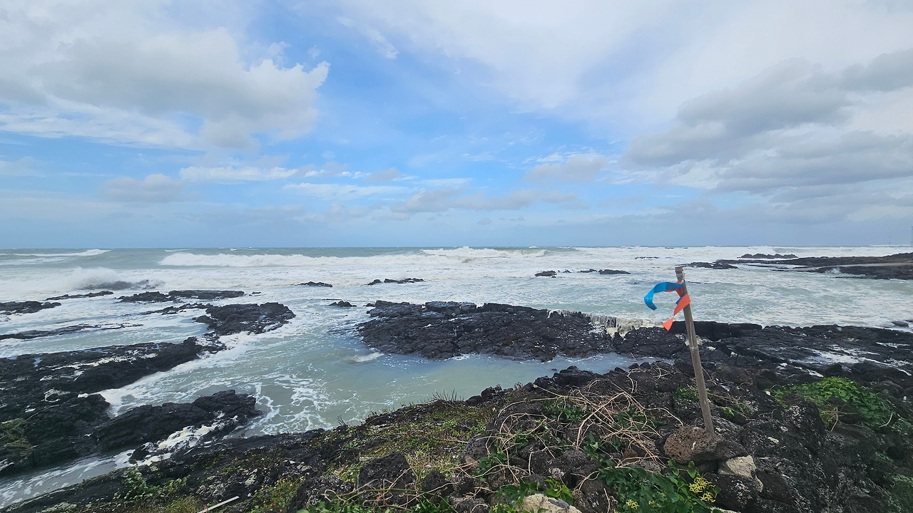우연히 뒤를 돌아보니 그녀들이 저 멀리서 걸어오고 있었다. 계속 걸었다. 걷다 놀라운 광경을 보았다. 이런 날씨에도 바다와 가까운 곳에서 바다낚시를 하는 두 사람이 멀리서 보였다. 그냥 아찔했다. 옆에서는 파도가 미친 듯이 달려들며 바위에 부딪히고 있는데, 이런 것에 아랑곳하지 않고 낚싯대를 바다에 드리우고 서서 기다리고 있었다. 그 모습에 ‘얼마나 미쳐야 저런 용기가 생길까?’, ‘과연 이런 바다 상태에서 물고기가 잡히나?’라는 생각을 하며 그들을 경외스럽게 보았다.