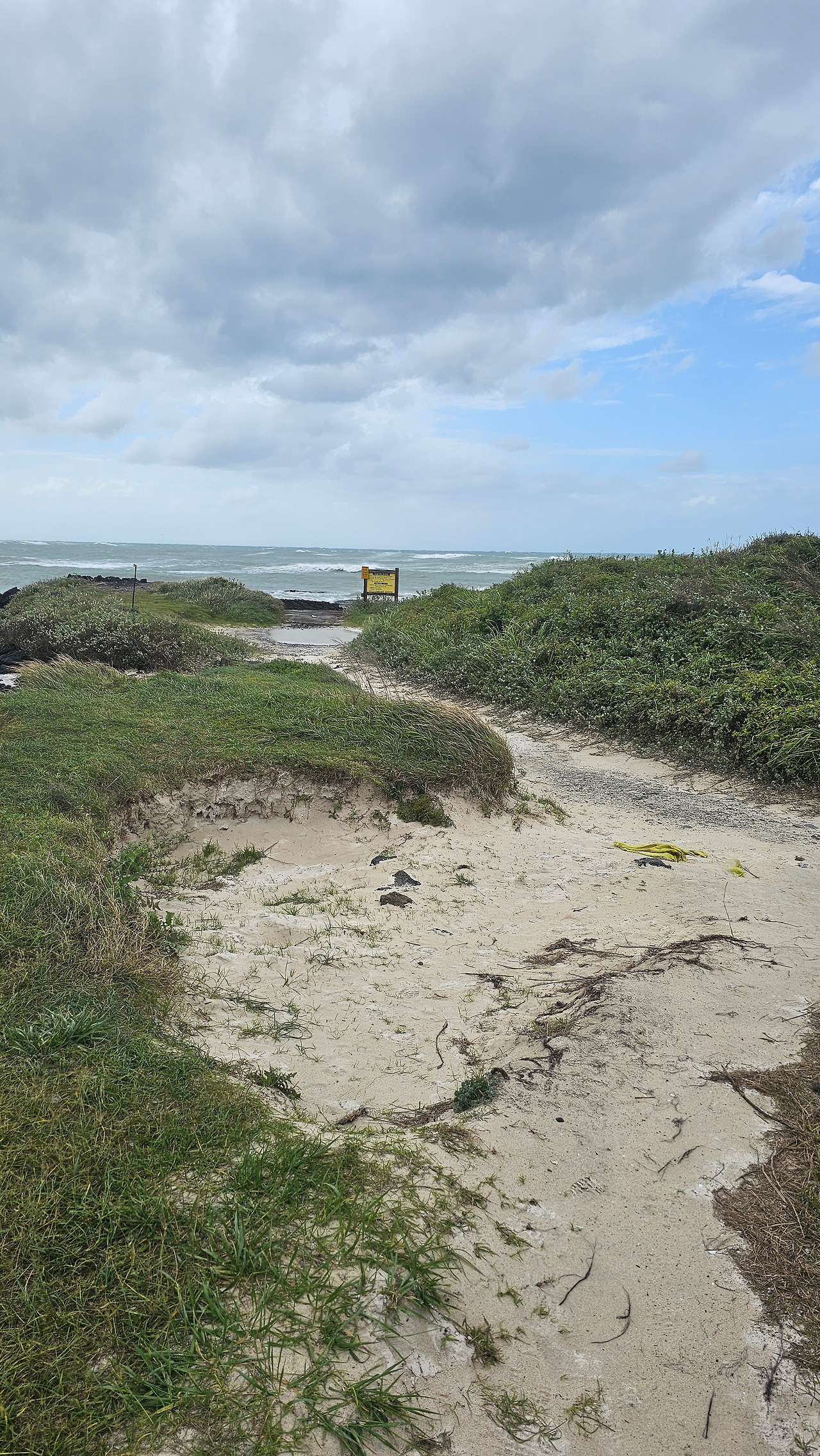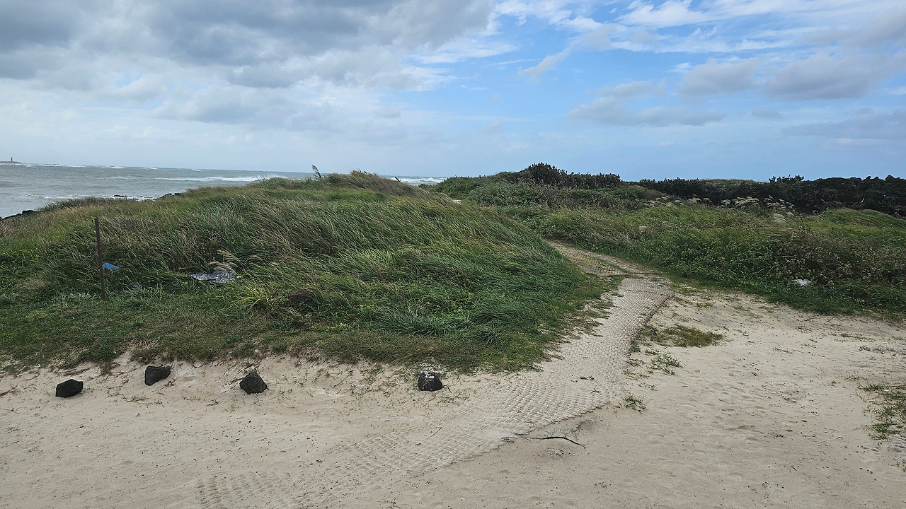 저지대여서 바닷물이 들어와 잠긴 길은 되돌아가 안전한 길로 갔다. 덩개해안이 끝나고 성세기 태역길이 시작되었다. ‘성세기’는 외세의 침입을 막기 위한 작은 성을, ‘태역’은 잔디를 의미한다. 잔디 또는 풀이 많은 곳이라는 의미이다. 여기서부터는 풀들과 모래언덕이 보였다. 성세기 태역길의 저지대 한 곳은 파도가 거의 없었지만 파도의 영향으로 물이 찰 듯 안 찰 듯했다. 나는 그냥 건넜다. 계속 걷다 언덕쯤에서 뒤를 봤다. 그녀들이 그곳으로 접근하고 있었다. 다시 걸었다. 그러면서 갑자기 불안감이 스멀스멀 올라왔다. 그곳은 물에 완전히 잠기지는 않았지만, 길이 돌들로 된 곳이어서 혹시 미끄러져 빠질 수 있지 않을까?라는 생각이 들었다. 다시 뒤를 돌아보았다. 그녀들이 보이지 않았다. 확인하러 가야 하나 갈등이 시작되었다. 그런데 나는 좀 멀리 와 있었다. 그녀들은 안전한 길을 찾아 되돌아갔을지도 모른다. 아니면 벌써 건넜으나 내 시야가 보이지 않는 곳에 있을 수도 있다. 또는 사진을 찍기 위해 풍경이 좋은 곳으로 이동했을 수도 있다. 그때 나는 되돌아갈 여유가 없었다. 당시 시간은 오후 2시 10분쯤이고 20코스도 끝내지 않았다. 19코스도 걸어야 했기 때문이었다. 그래서 가도 되지 않을 괜찮은 이유를 생각하고 있었던 것일지도 모른다. 별일 없겠지 하고 걸었다.